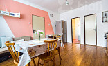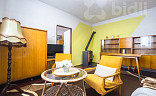 Prostorný obývací pokoj s francouzským oknem vedoucím na udržovanou zahradu. Dům je vytápěn elektrickými přímotopy a krbovými kamny. Dům má dva komíny (nevyvložkované). Elektrické rozvody jsou v mědi, nové jističe