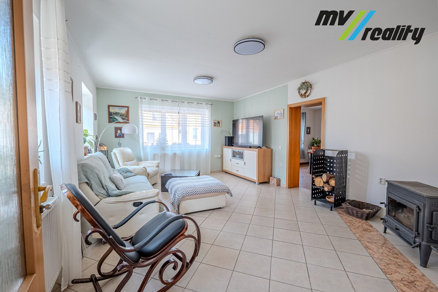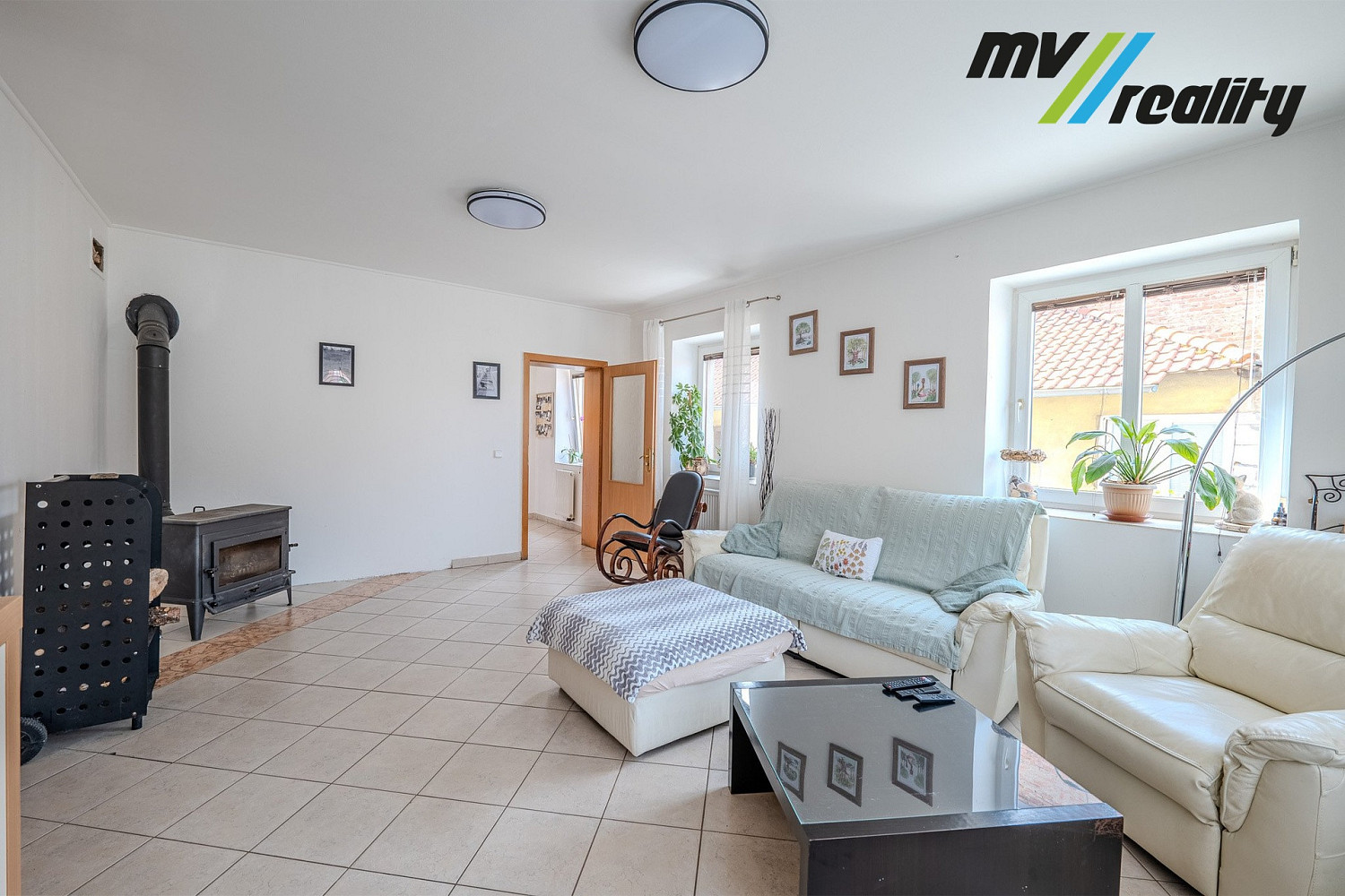 V celém domě jsou plastová okna a na podlahách dlažba a plovoucí podlaha.
