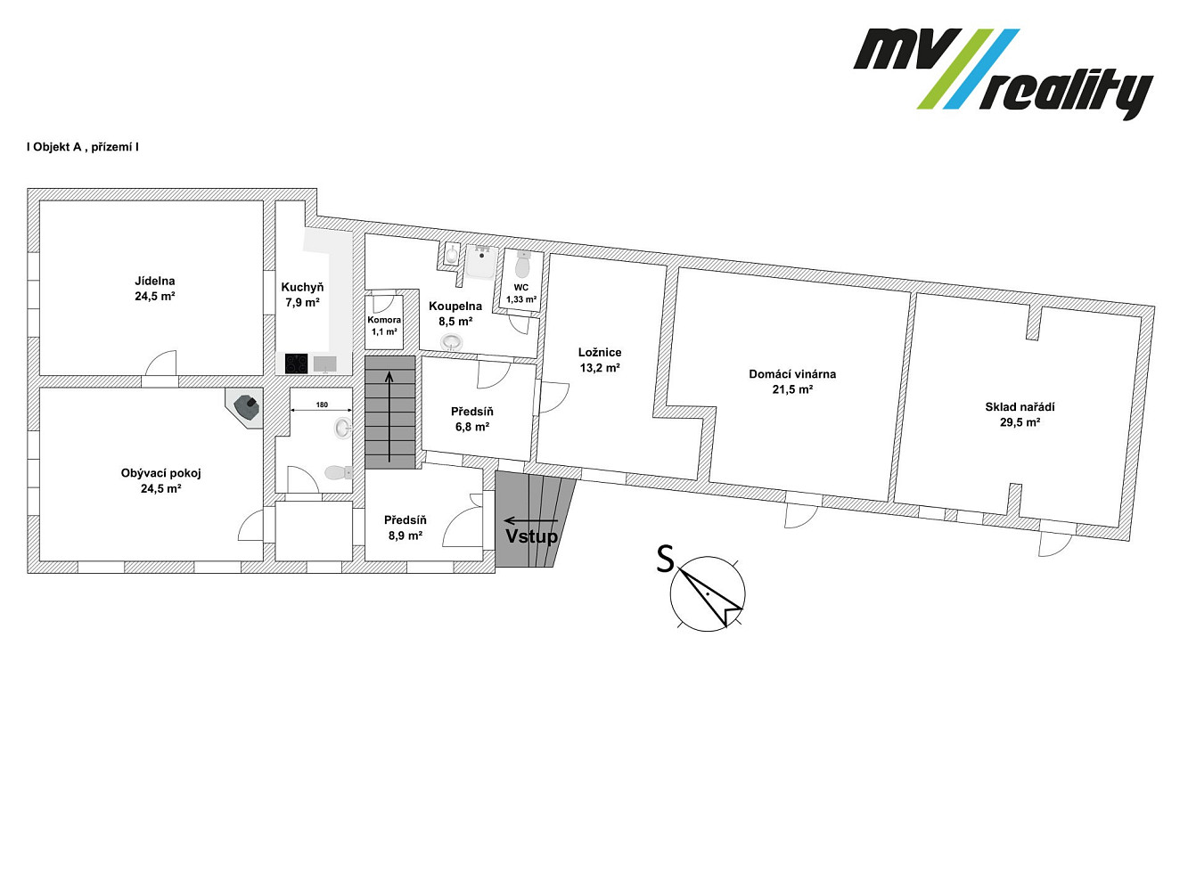 Za domem pokračuje vinárna a dílna, navazuje velká stodola.