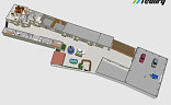 V přízemí se nachází bytová jednotka 3+kk. Chodbou se dostaneme z jedné strany do obývacího pokoje, jídelny a kuchyně a z druhé do ložnice.