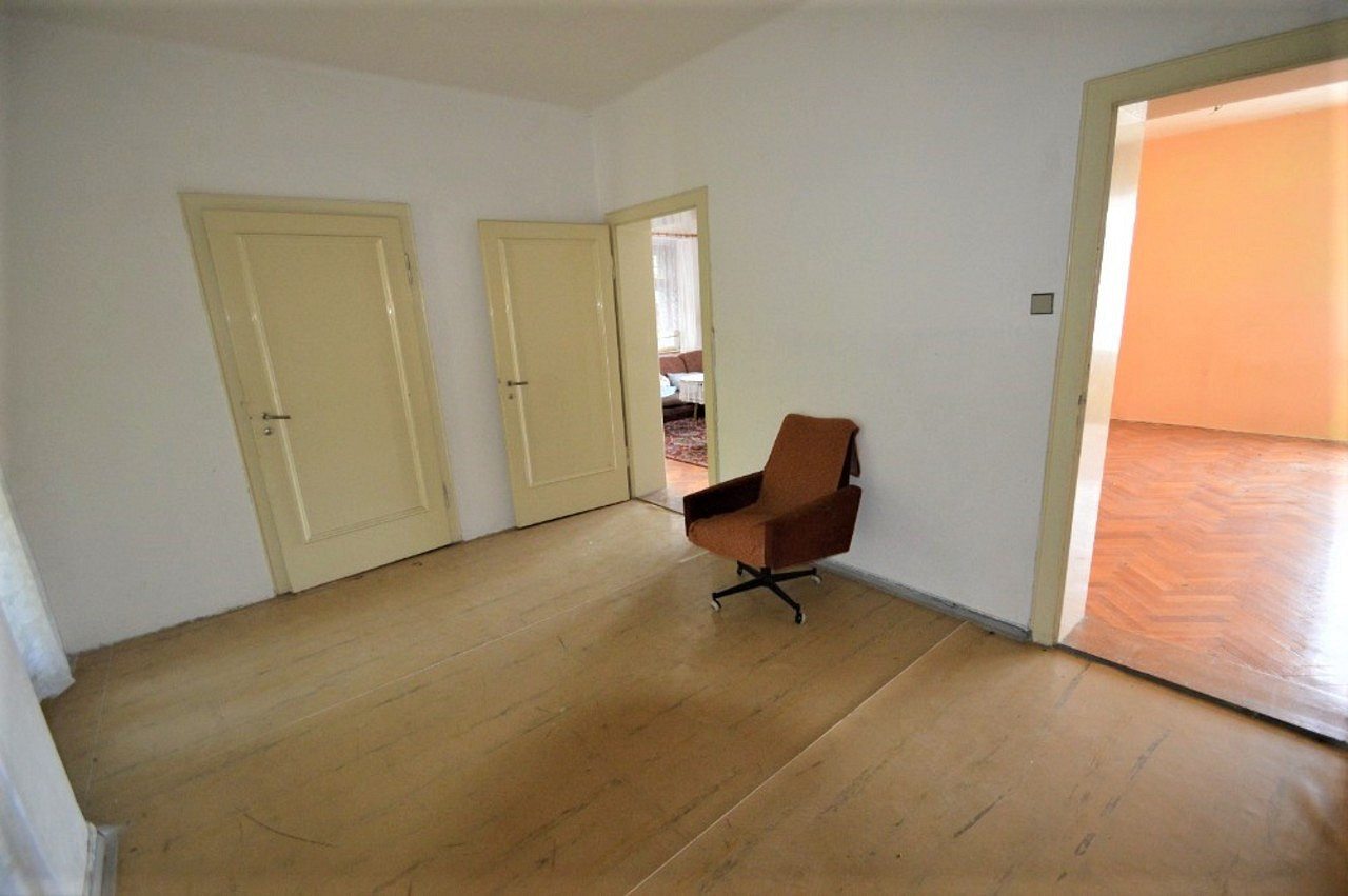 Do obytného patra se dostaneme po schodech, kde na první pohled zaujme zábradlí, které dává prostoru osobitý ráz. Přivítá nás vstupní chodba s které se dostaneme do jednotlivých částí bytu. Momentálně má čtyři pokoje, koupelnu s toaletou, kde byla započata rekonstrukce a celková rozloha je více jak 100m².