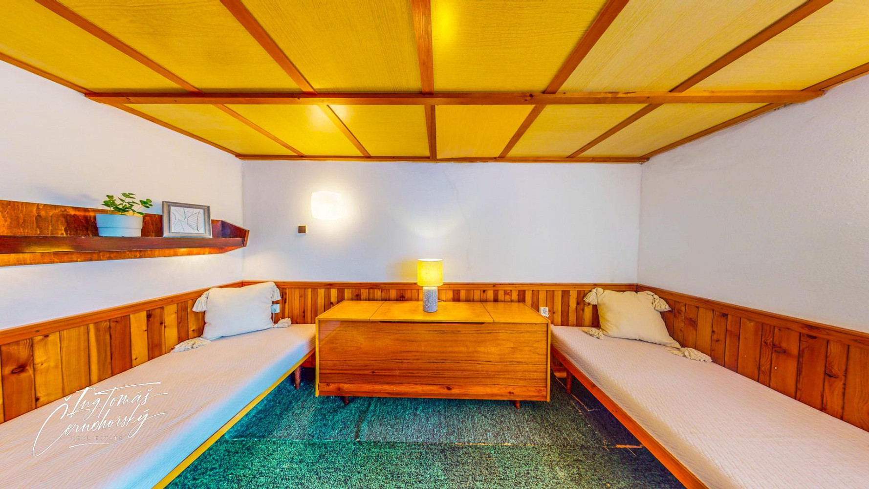 Stavba je zděná, pečlivě udržovaná a připravená k okamžitému užívání. Nad terasou se nachází hlavní obytná jednotka 2+1, která nabízí kuchyň, obývací pokoj, ložnici a samostatnou toaletu. Vše je útulné, světlé a s přímým vstupem na velkou terasu orientovanou do klidné zeleně ideální pro letní snídaně, odpolední grilování i večerní posezení s přáteli.