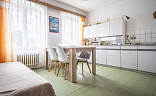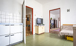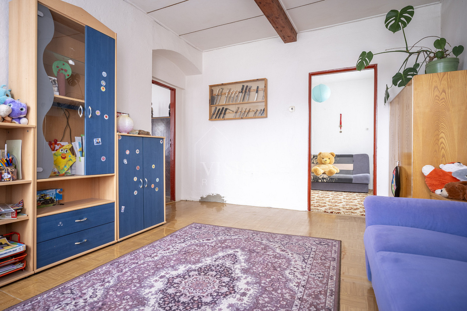 V druhém nadzemním podlaží je situována obytná část o dispozici 3+1 s přímým vstupem na terasu a zahradu. Interiér je v původním, avšak pečlivě udržovaném stavu, takže je možné jej využívat ihned nebo si jej upravit dle vlastních představ.