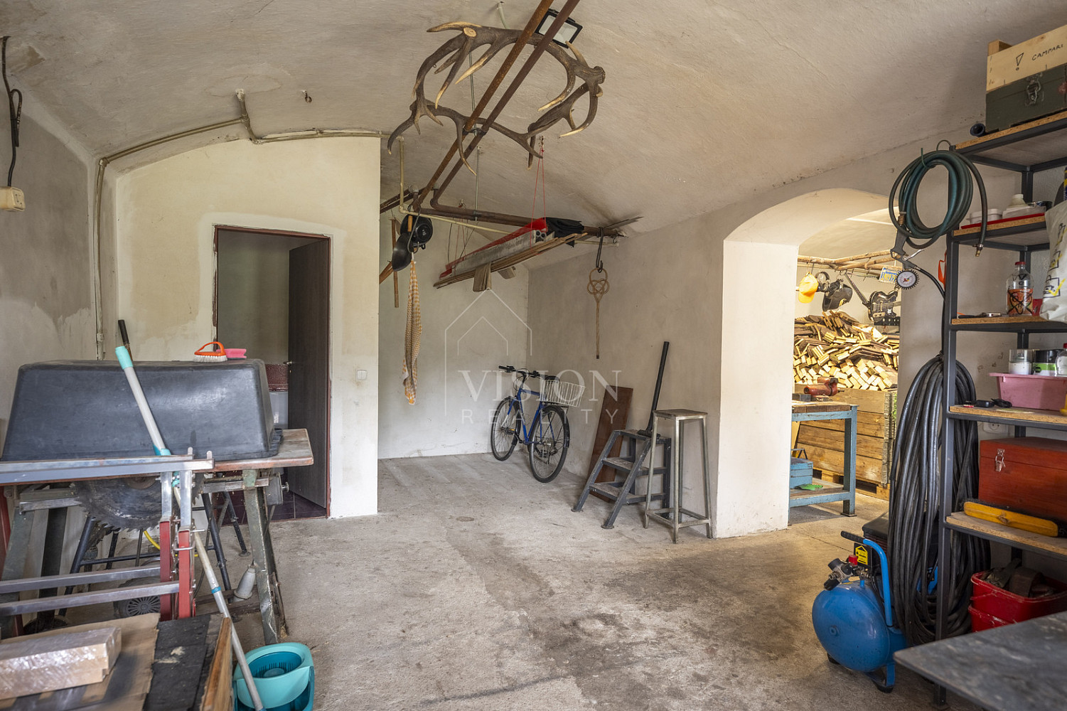 V přízemí se nachází garáž a dílna, kde byly nově provedeny betonové podlahy. Tento prostor nabízí ideální zázemí nejen pro parkování, ale i pro kutilství či menší domácí výrobu.