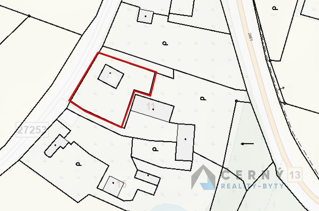 Jednopodlažní dům s obytným podkrovím a velkým půdním prostorem stojí na vlastním pozemku o výměře 828m².