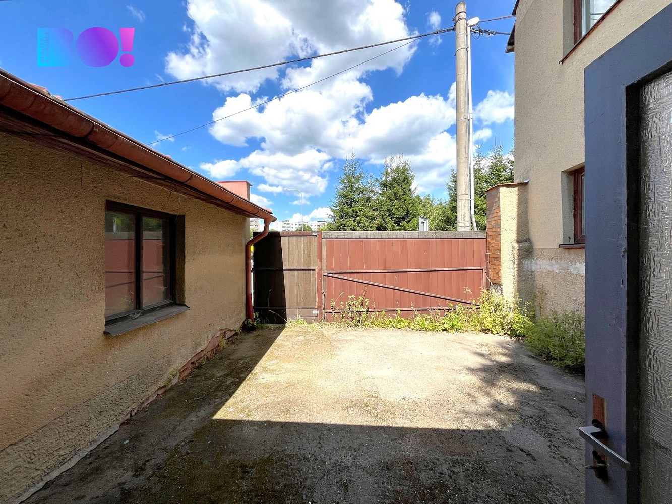 Dispoziční řešení prvního podlaží domu: vstupní chodba, pokoj, zrekonstruovaná koupelna, sklípek, kotelna s plynovým kondenzačním kotlem, nebytové prostory, prostorná garáž.