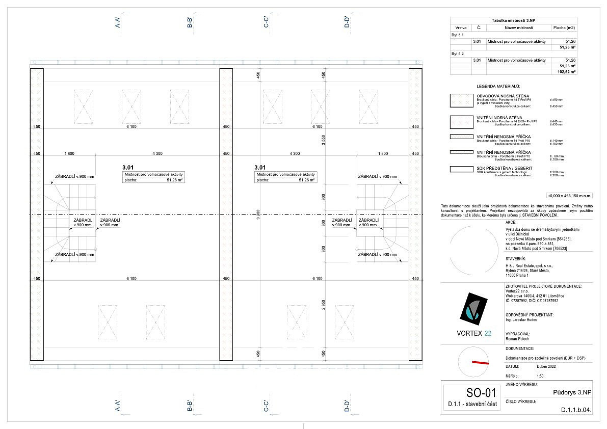 Třípodlažní dům o dispozici 4+KK a užitné ploše 111 m² ( plus užitné podkroví o výměře 53 m² ).