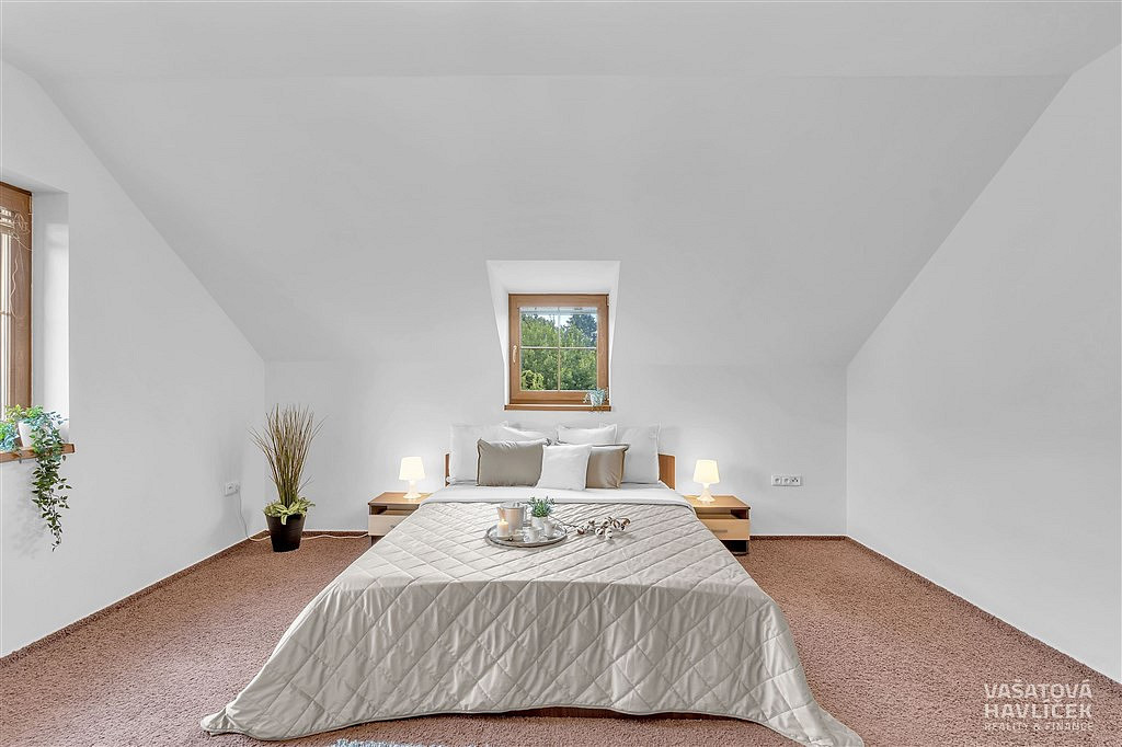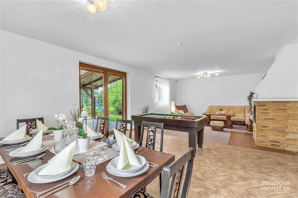 Na krásně upraveném pozemku o velikosti 1 189 m² najdete nejen samotný dům, ale i spoustu prvků, které dělají z běžného bydlení radost: k posezení s rodinnou využijete zastřešenou terasu s honosným kamenným krbem, ve kterém bez problému upečete pořádný kus masa, případně si v přiléhající udírně můžete vyudit něco dobrého, jezírko s rybičkami je přesně místem, které vám dodá klid na duši. Na zahradě stojící samostatný malý domek o užitné ploše 27, 4 m² může být ideální pro hosty nebo třeba jako pracovna (vybavený sociálním zařízením a napojený na veškeré potřebné rozvody), skleník se samozavlažováním pro zahradnické nadšence, dětský domek, zahradní domek a kryté stání až pro tři auta. Vše promyšlené, praktické a přitom estetické.