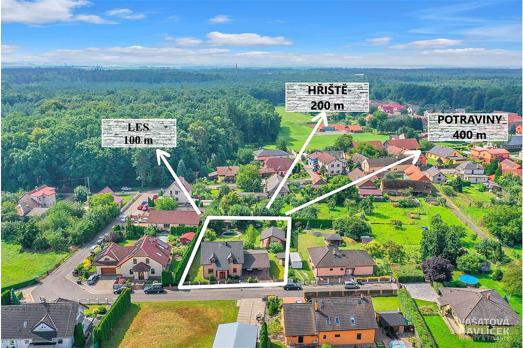 V docházkové vzdálenosti od domu najdete potraviny (6 min), autobusovou zastávku (8 min), dětské či fotbalové hřiště a tenisové kurty (5 min), do školky a školy v Rasoškách jste autem z domu za 4 minuty a kompletní občanskou vybavenost nabízí nedaleká Jaroměř (10 min autem). Skvělá je i dostupnost na dálnici D11, a to do 10 minut.