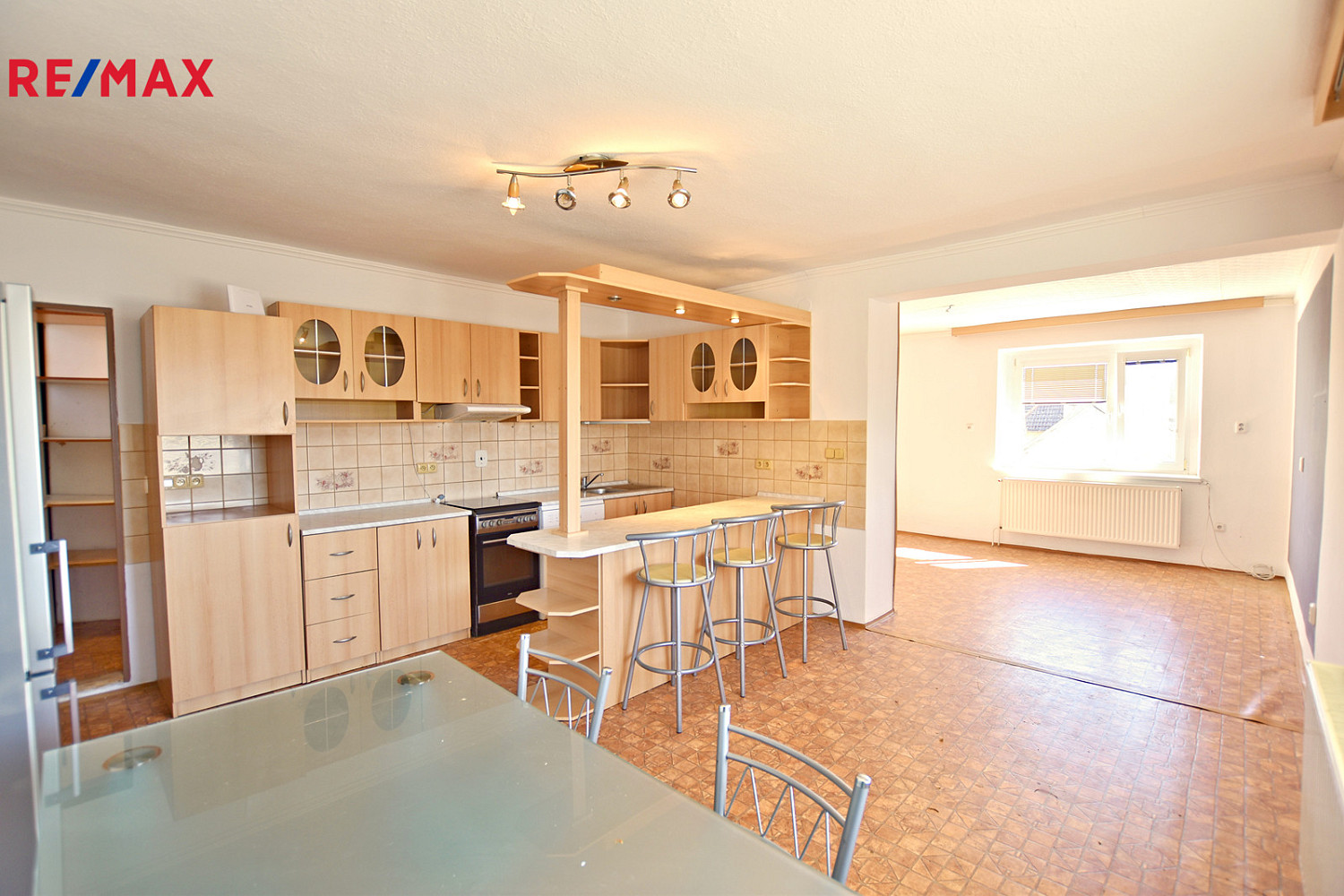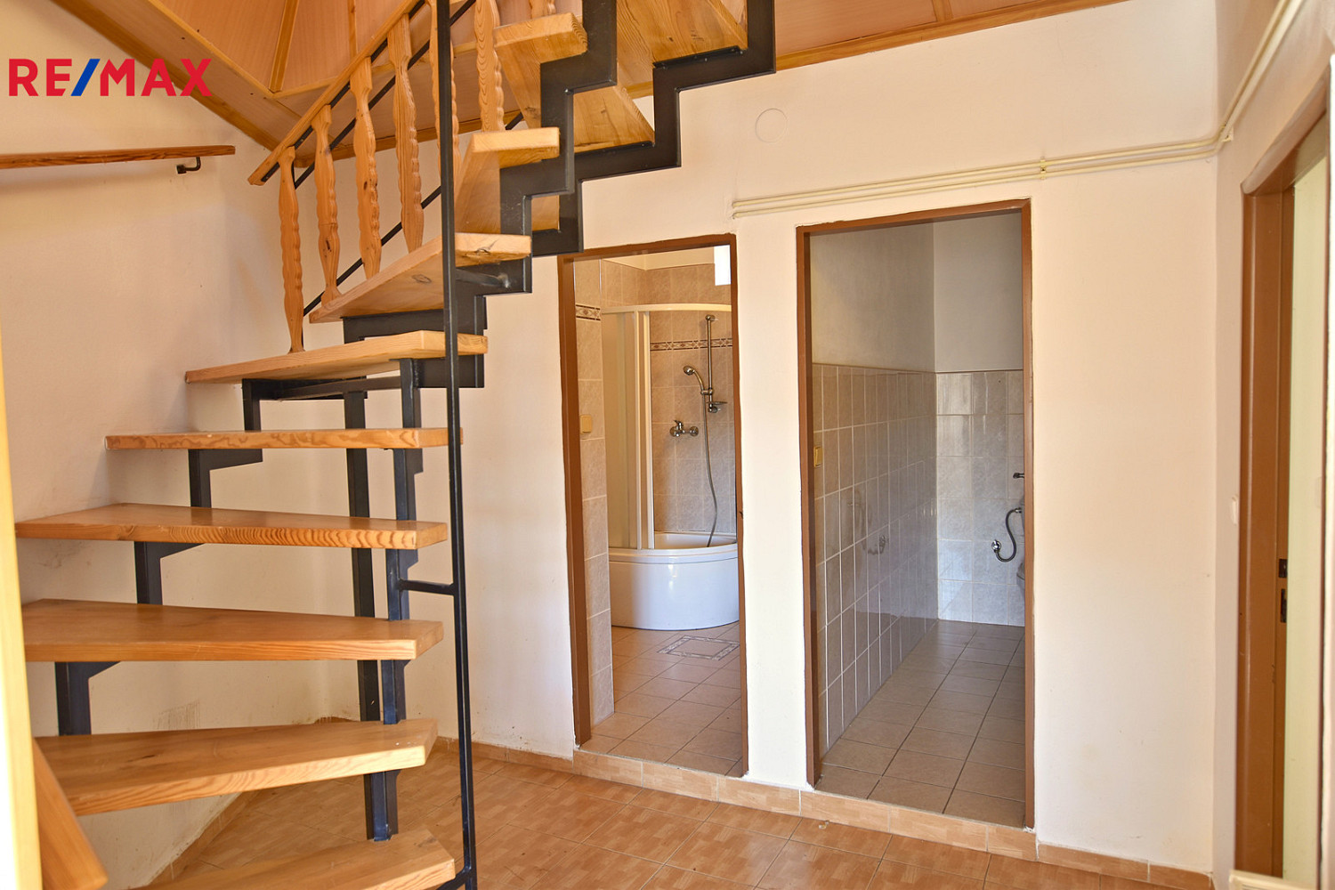 Rodinný dům s dispozicí 5 + kk prošel v minulosti zásadní rekonstrukcí se úpravou dispozic a vybudováním obytného podkroví. V přízemí domu se nachází zádveří s navazující centrální chodbou a vstupy do všech částí. Hlavní obytný prostor (38 m²) na tomto podlaží je tvořen obývacím pokojem s navazující kuchyňskou a jídelní částí. Dále jsou v přízemí 2 samostatné obytné pokoje (každý 20 m²), koupelna se sprchovým koutem, umyvadlem a místem na pračku a samostatné WC. V podkroví domu je prostorná podesta a další 2 pokoje (každý 17,5 m²). Dům je částečně podsklepený – ve sklepě je kotelna a technická místnost.