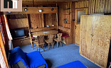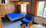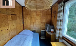 Dispozice chaty 3+1, skládá se z prostorné verandy, velkého pokoje sloužícího jako obývycí pokoj s velkou postelí a dřevěným obložením, menšího pokoje, chodby a kuchyně. Samostatné WC a koupelna.