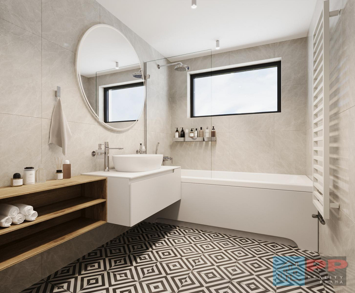 Vysoký standard zařizovacích předmětů kvalitní podlahy, obklady a sanita pro moderní a elegantní interiér.