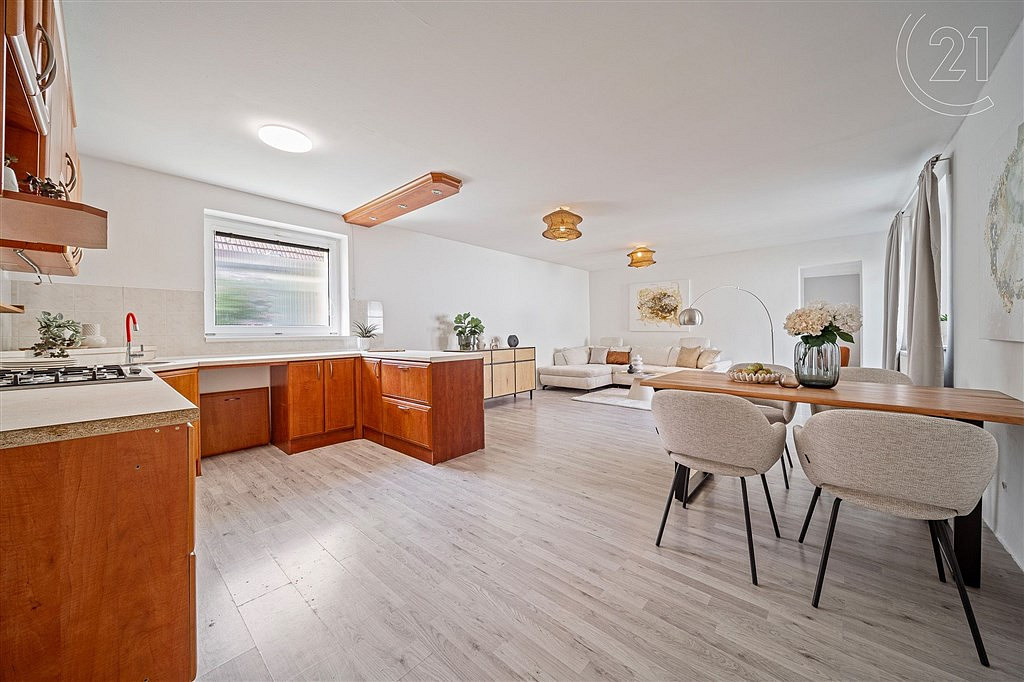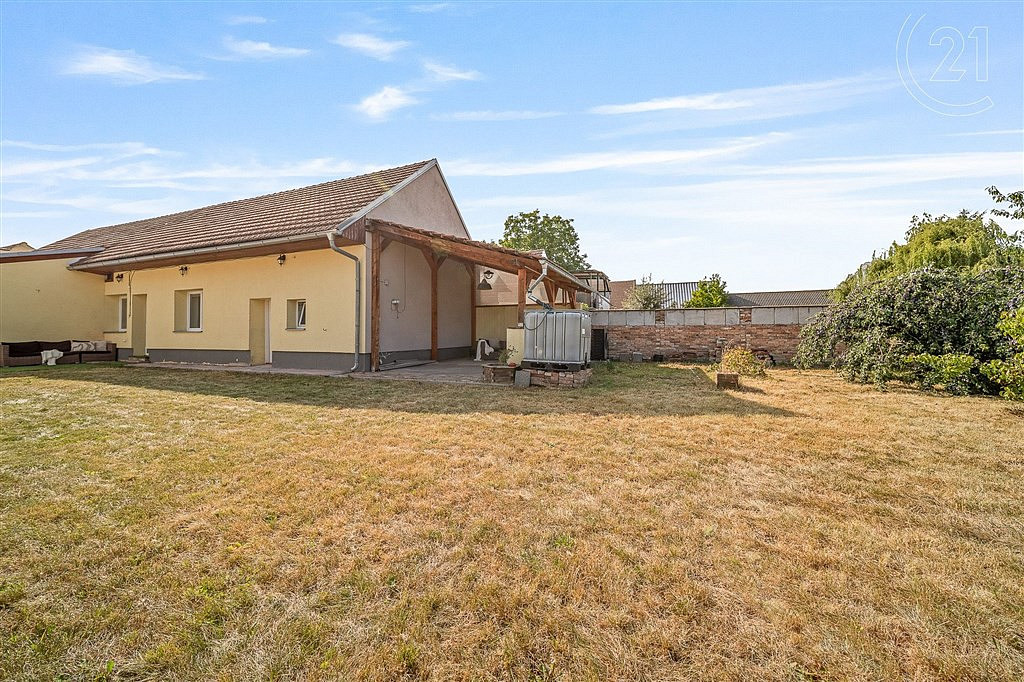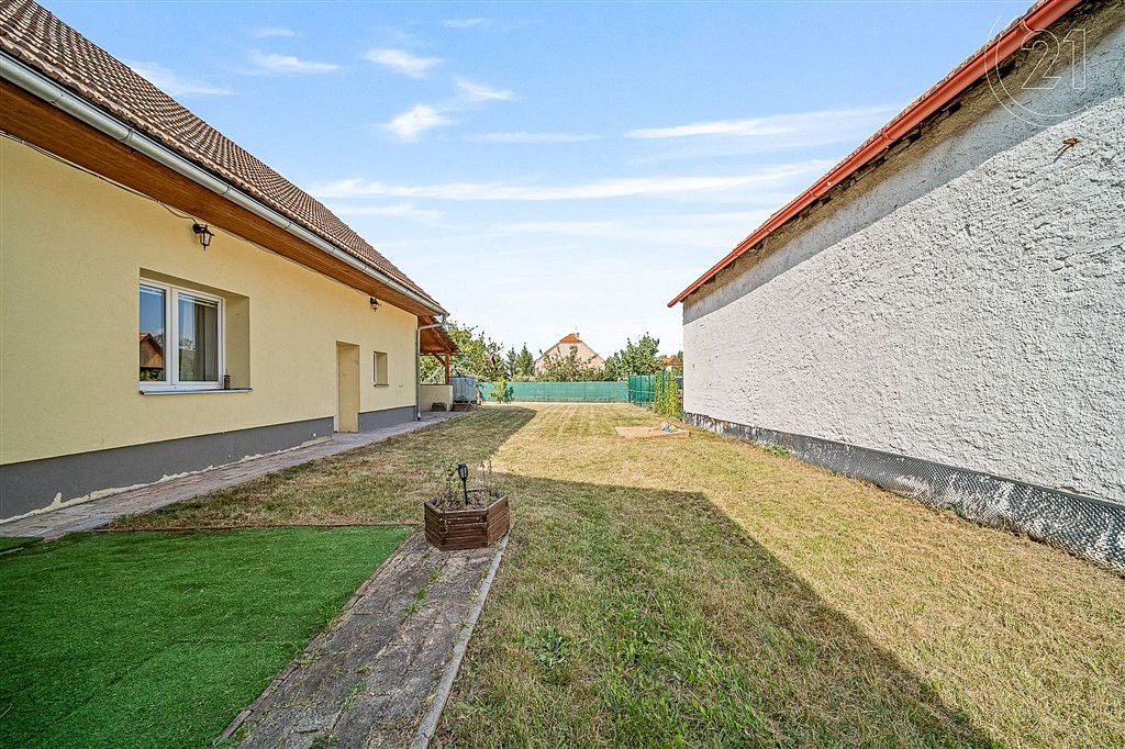 V původní zástavbě a klidné slepé ulici ve Velkých Chvalovicích najdete dům, který nechá vyniknout rodinnému rytmu. Na 123 m² užitné plochy máte dost místa pro společná rána i tiché večery pod novou pergolou. Parcela o velikosti 512 m² je akorát: zvládnete ji udržet bez víkendů strávených za sekačkou, přitom poskytne dětem prostor na běhání i místo pro záhony či ovocné stromky. Vodu na zalévání si berete přímo z vlastní kopané studny. Dům je napojen na vodovod a kanalizaci, plyn je k dispozici, do domu aktuálně zaveden není. O teplo a ohřev vody se stará tepelné čerpadlo vzduch voda, které zajistí pohodlný a úsporný provoz.