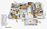 Interiér tvoří celkem čtyři obytné místnosti, kuchyně, koupelna a toaleta zvlášť.