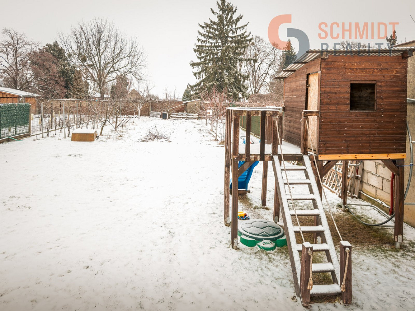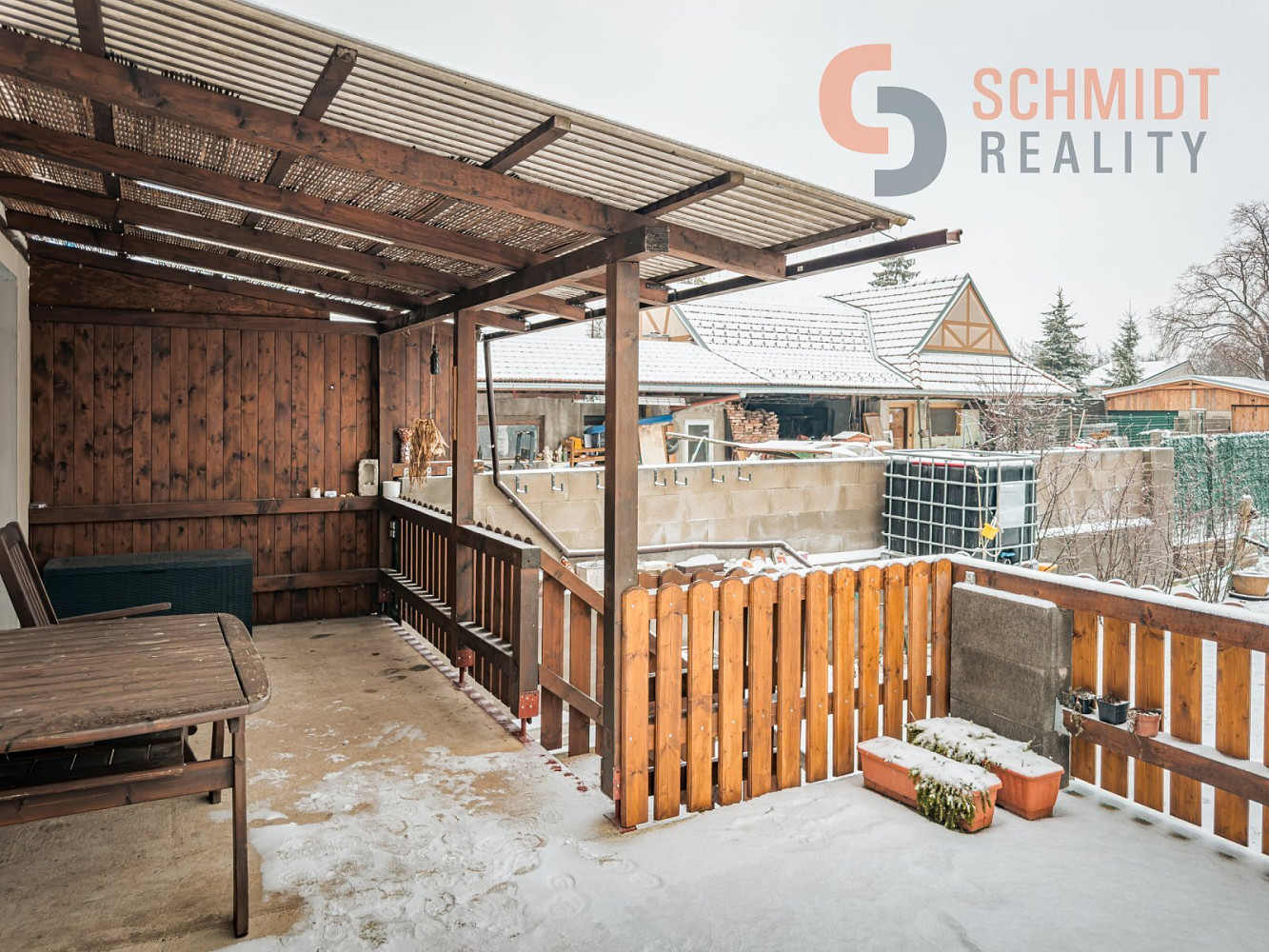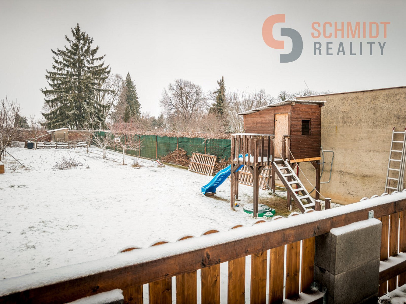 Součástí domu je oplocená zahrada s terasou o ploše cca 35 m² (10 m² zastřešená s LED osvětlením), úložným prostorem pod terasou, retenční nádrží na dešťovou vodu 16 m3, nepoužívaným septikem cca 16 m3. Na zahradě je také rozvod vody a elektřiny, zahradní dětský domek se skluzavkou, jezírko, zděný kurník s automatickým zavíráním a ovocné stromy – jabloně, třešeň, višeň, nektarinka, švestka, pistácie, mandloň, muchovník. Trávník cca 200 m², zbytek pozemku výsadba (vinohrad).