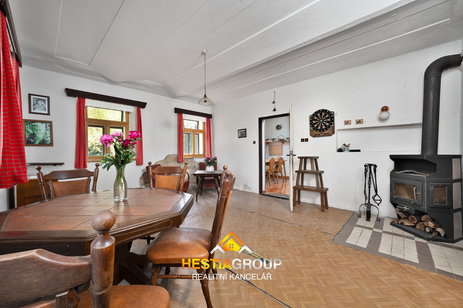 vstupní chodba, pokoj, kuchyň, obývací pokoj s krbovými kamny, koupelna, samostatná toaleta, komora