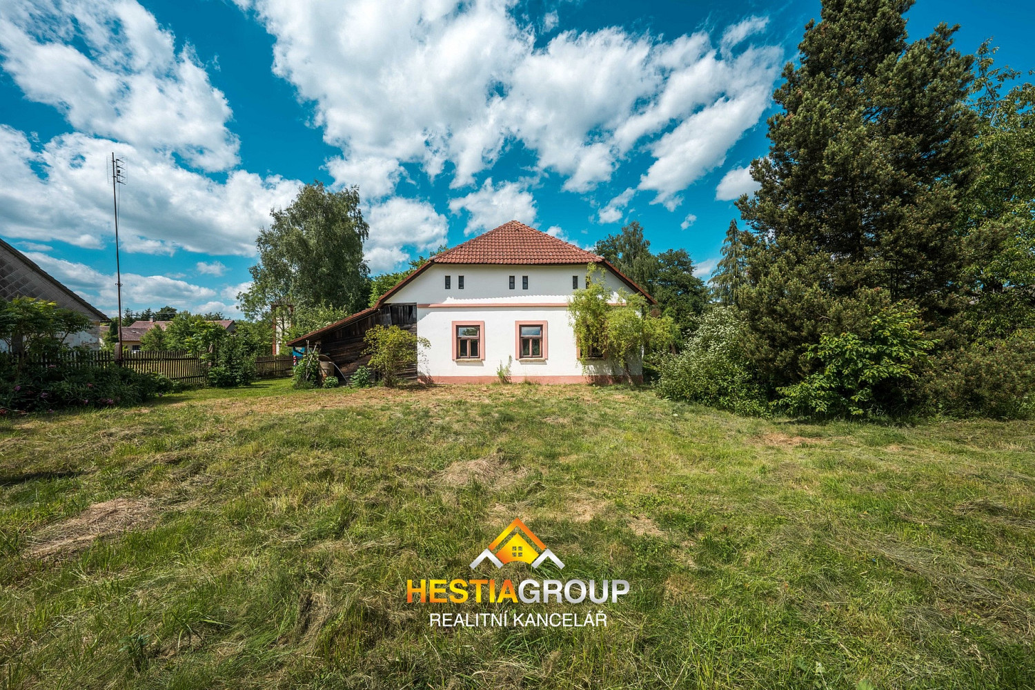 Výhodou je rozlehlý pozemek o rozloze 1442 m², který lze v případě potřeby rozdělit na další stavební pozemek.