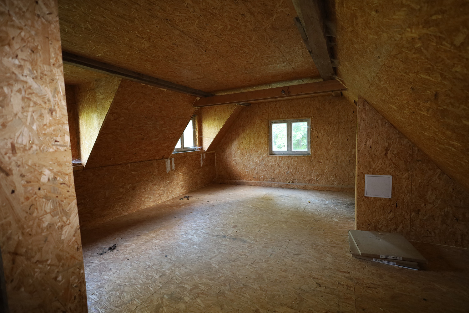Podkroví má připravené zázemí pro vybudování dvou prostorných obytných místností a navíc disponuje cca 100 m² půdy, kterou lze využít dle vlastních potřeb – další pokoje, ateliér nebo úložné prostory.