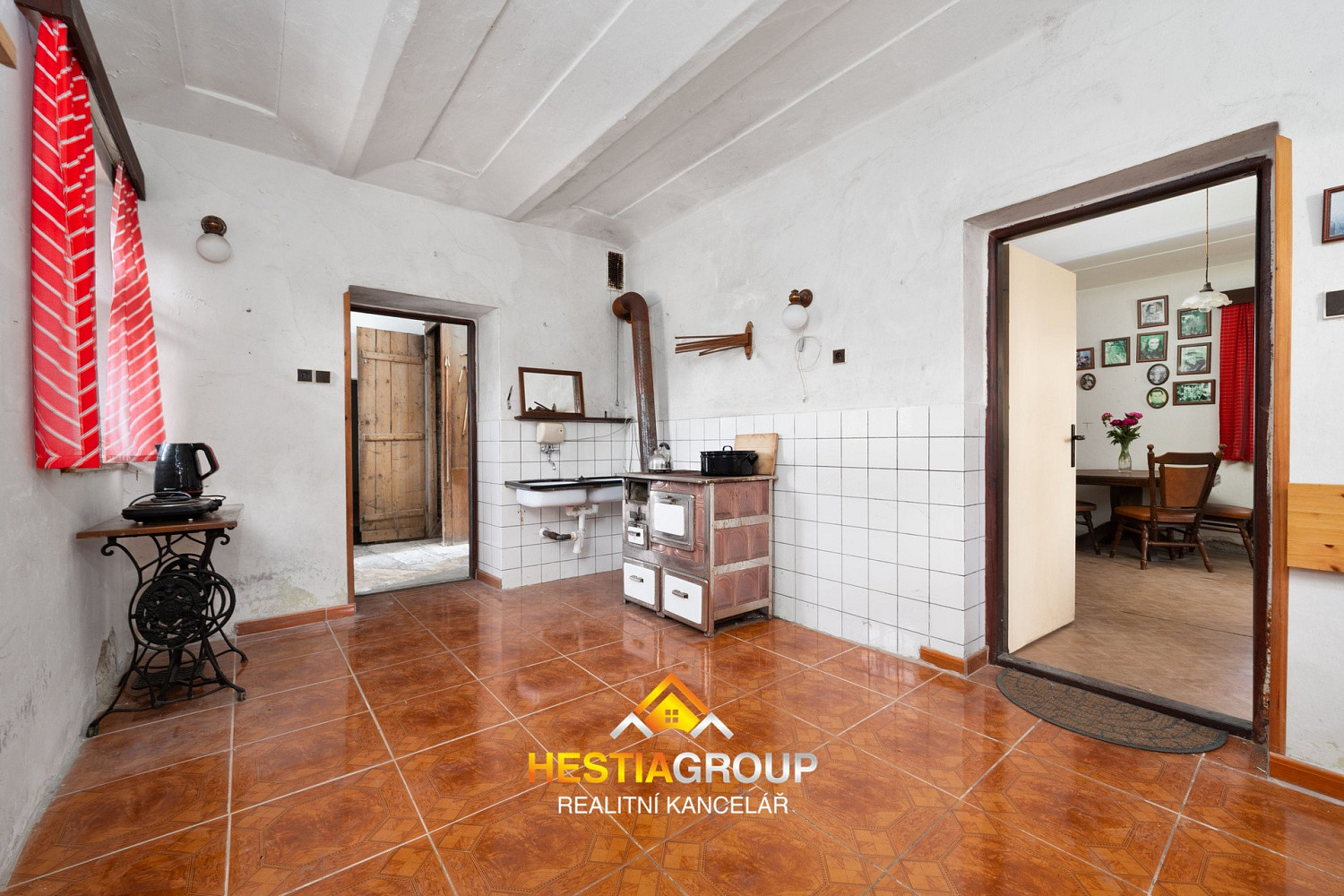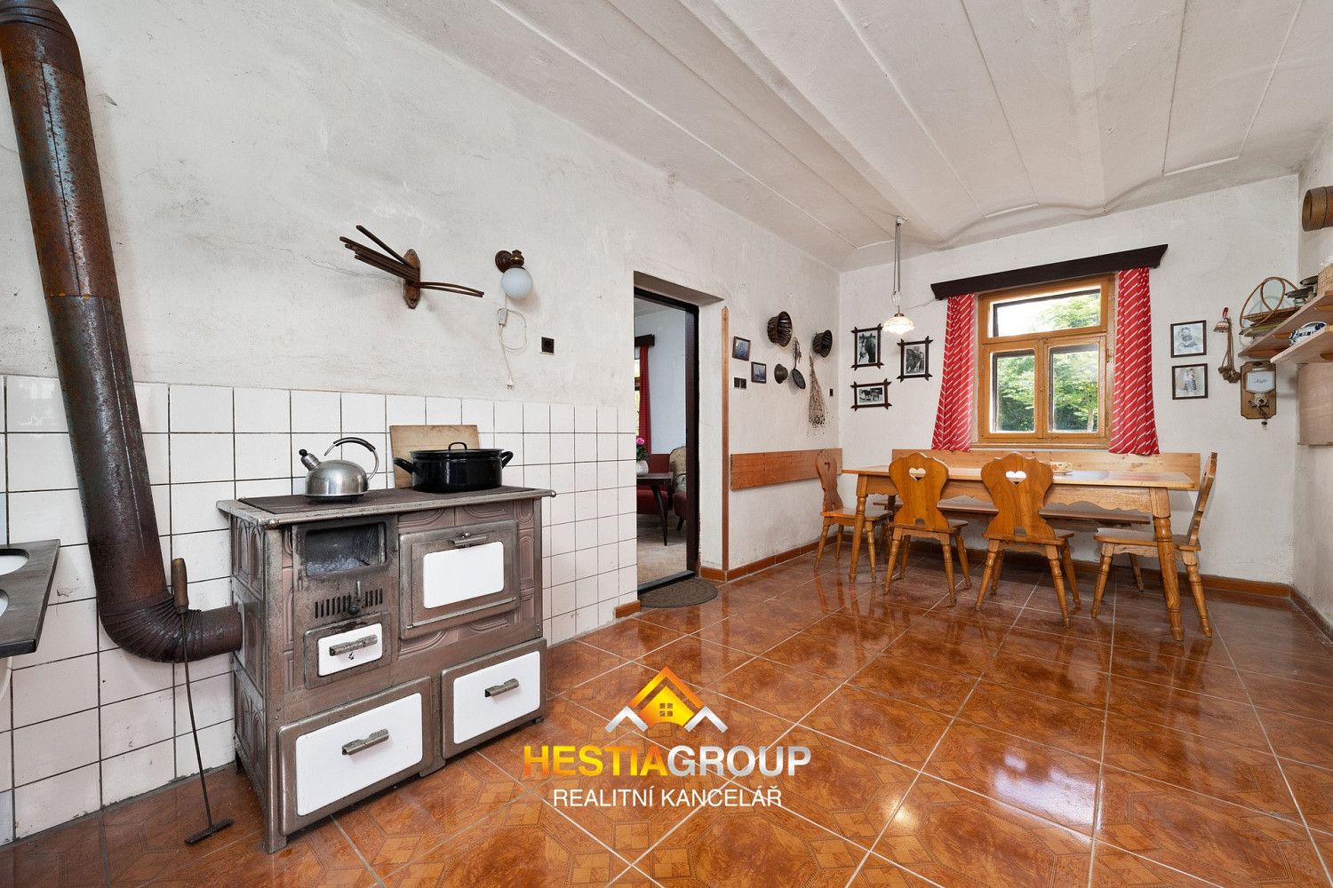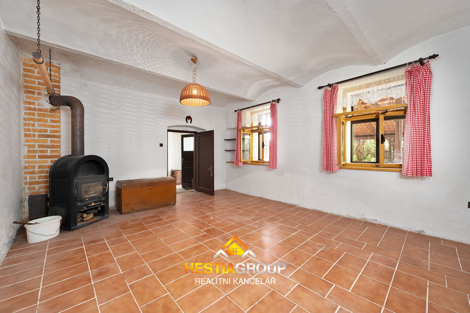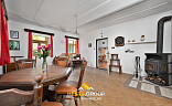 vstupní chodba, pokoj, kuchyň, obývací pokoj s krbovými kamny, koupelna, samostatná toaleta, komora