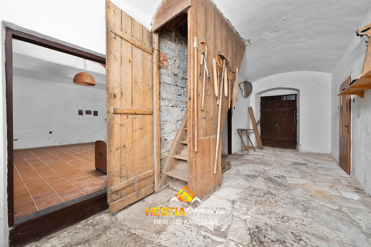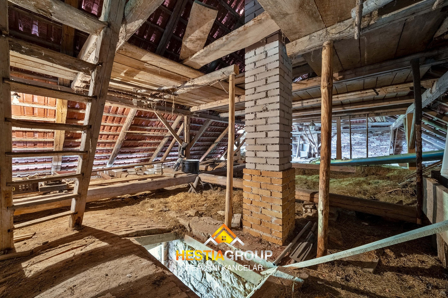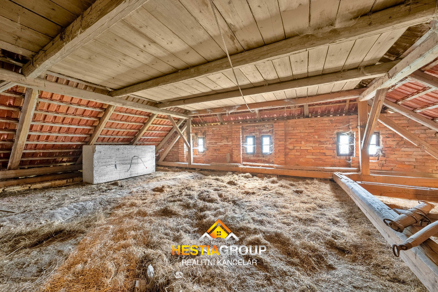 Z chodby je vstup do půdního prostoru, kde lze zbudovat prostorný obytný prostor s nádherným výhledem do okolní krajiny.