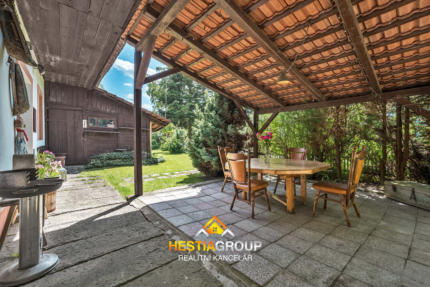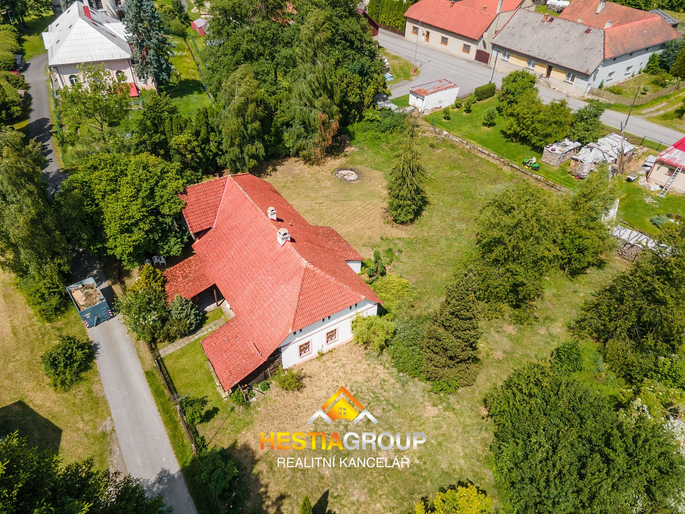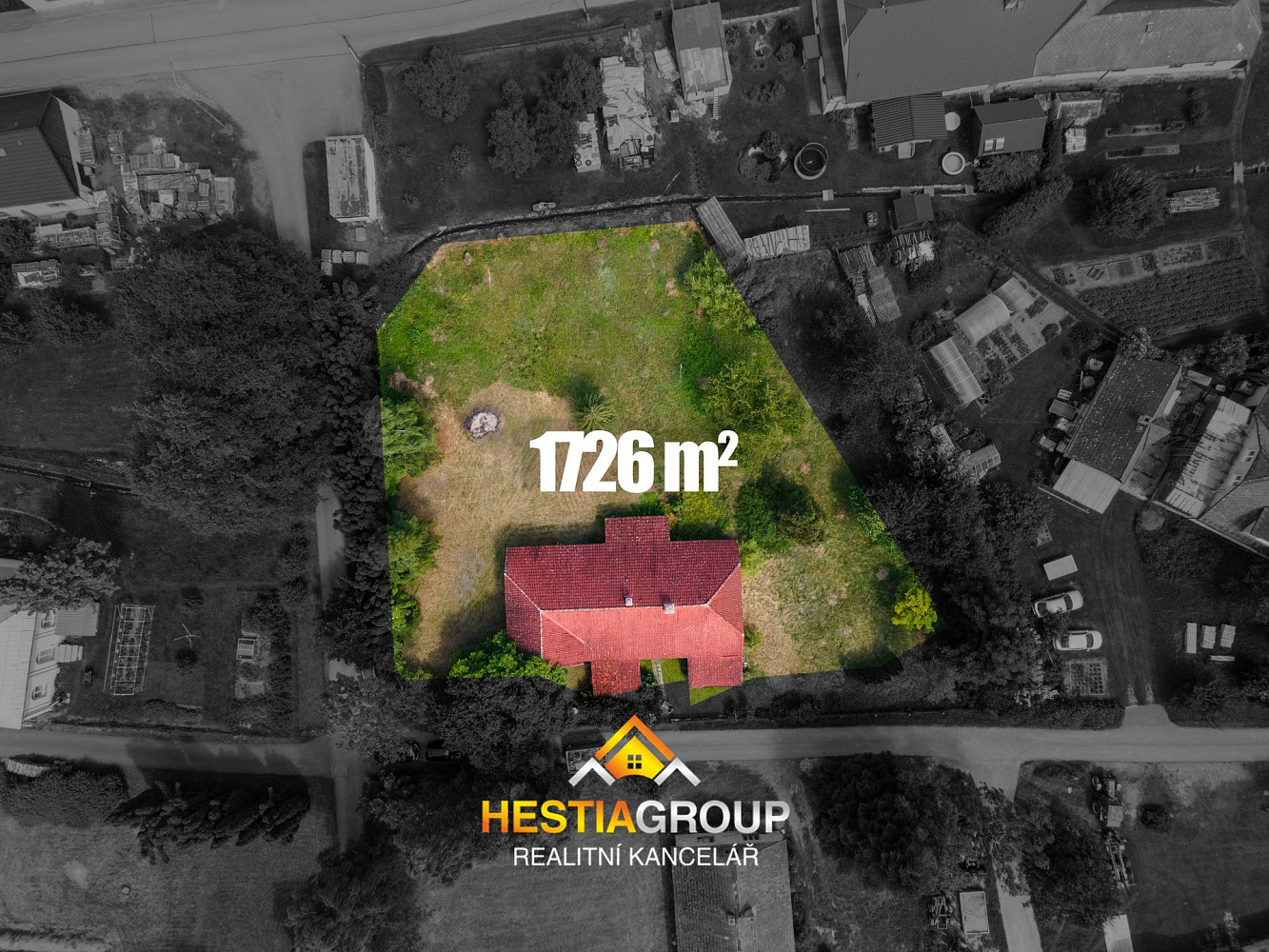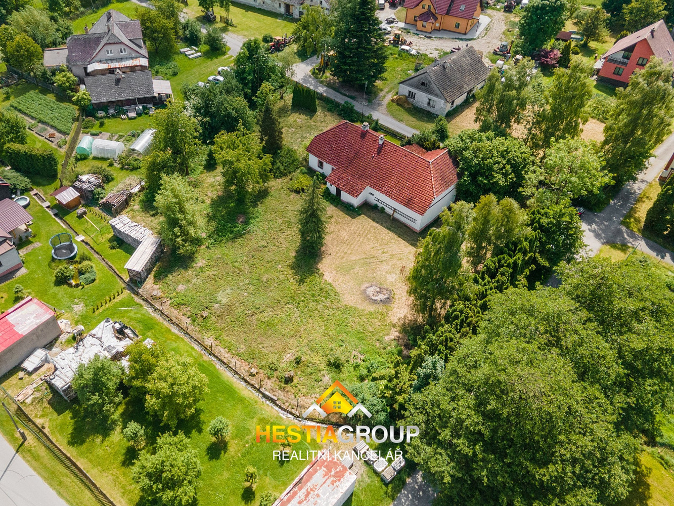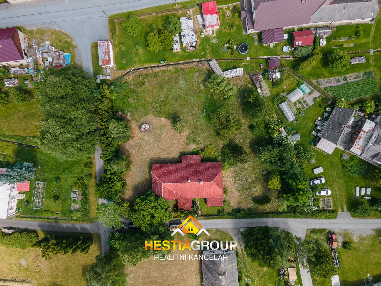 Výhodou je rozlehlý pozemek o rozloze 1442 m², který lze v případě potřeby rozdělit na další stavební pozemek.