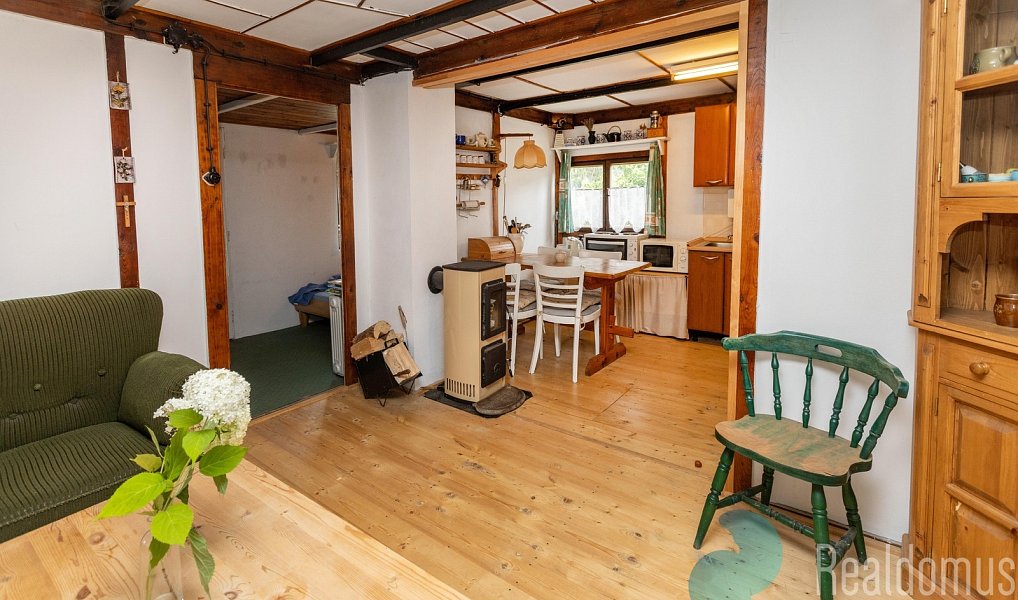 Přímo u chaty je zastřešené sezení na chvíle s přáteli či rodinou. Na pozemku se nachází i menší stavba na nářadí a potřebné věci. Nemovitost tak nabízí nejen klid a zeleň, ale i potřebné zázemí pro kutilství, uskladnění věcí nebo pohodlné parkování. Parcela je dostatečně velká pro zahradničení, relaxaci nebo třeba dětské hry.