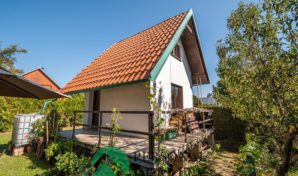 V přízemí se nachází obývací místnost s kuchyňským koutem, koupelna se splachovacím WC, v patře je prostorná ložnice. Celková obytná plocha je 60 m², celá chata podsklepena. K dispozici je také terasa 20 m², kde si můžete vychutnat ranní kávu nebo večerní grilování. V současné době ZP 20 m², dle územního plánu lze zastavitelnost chaty zvětšit až na 40 m². Vytápění řešeno krbovými kamny, elektřina 220 / 380 V, kanalizace svedena do jímky, obecní vodovod a ohřev vody řešen bojlérem, obec buduje kanalizaci. K dispozici jsou dvě parkovací místa. 800 - 1000 m od chaty možnost koupání.
