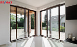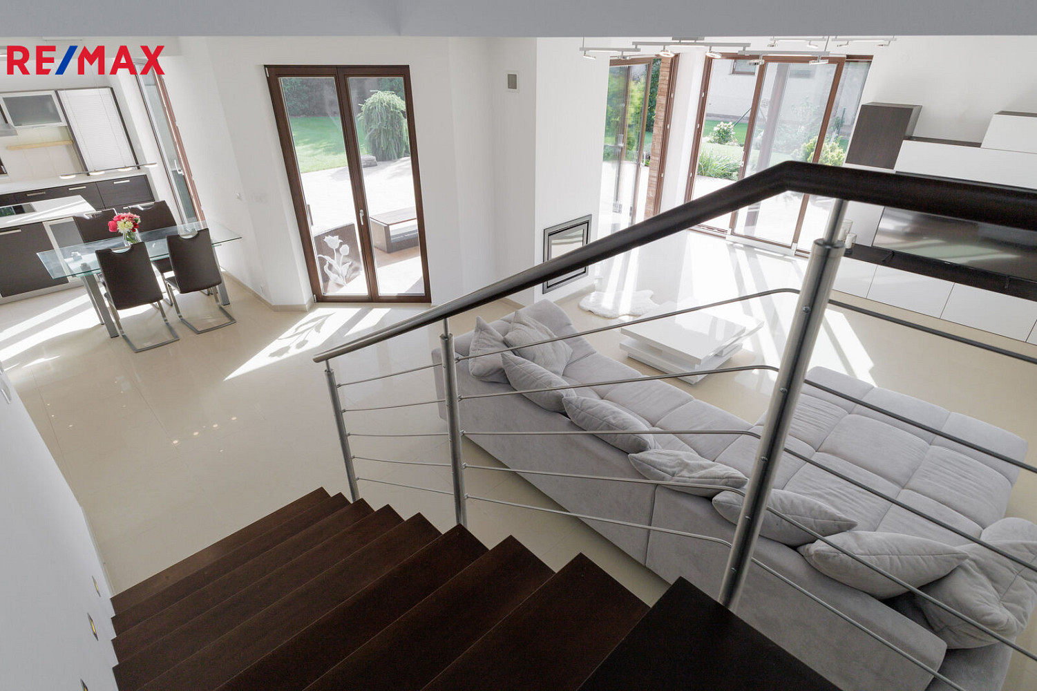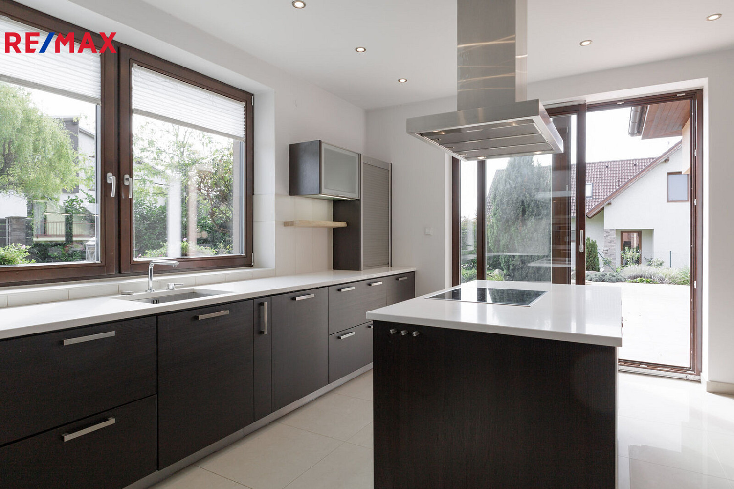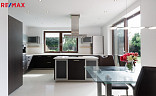 Dominantou celého domu je jeho přízemí. Kuchyň, která je do posledního detailu navržena nábytkem na míru zn. Sykora. Vestavěné spotřebiče zn. Miele jsou samozřejmostí, stejně jako zabudovaný kávovar. Ženy jistě ocení špajz, který ke kuchyni patří.