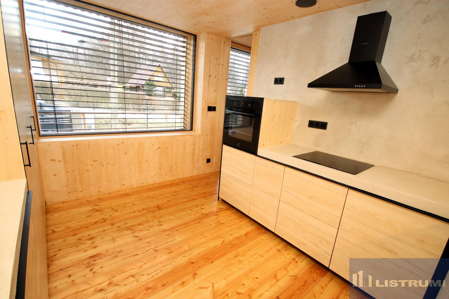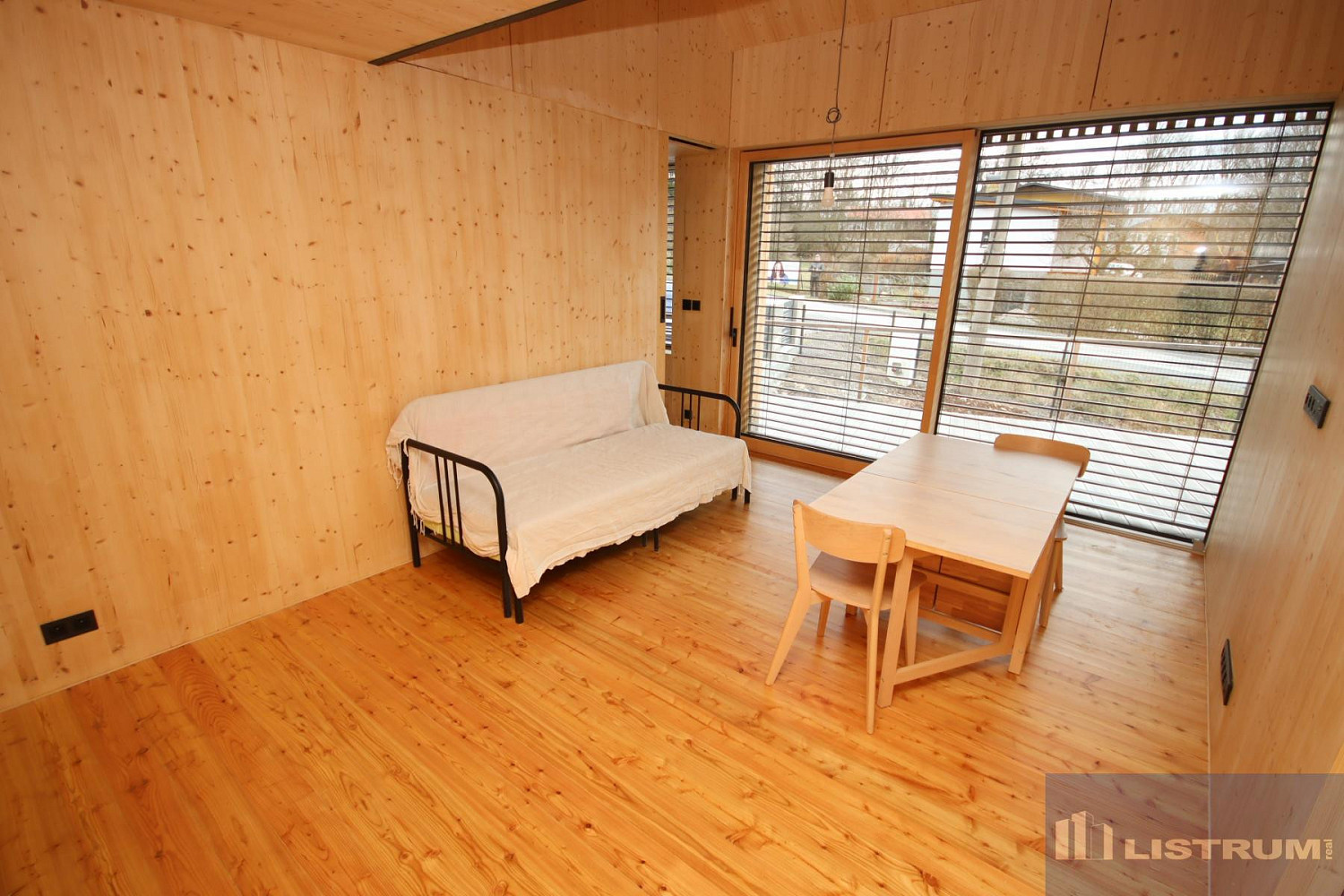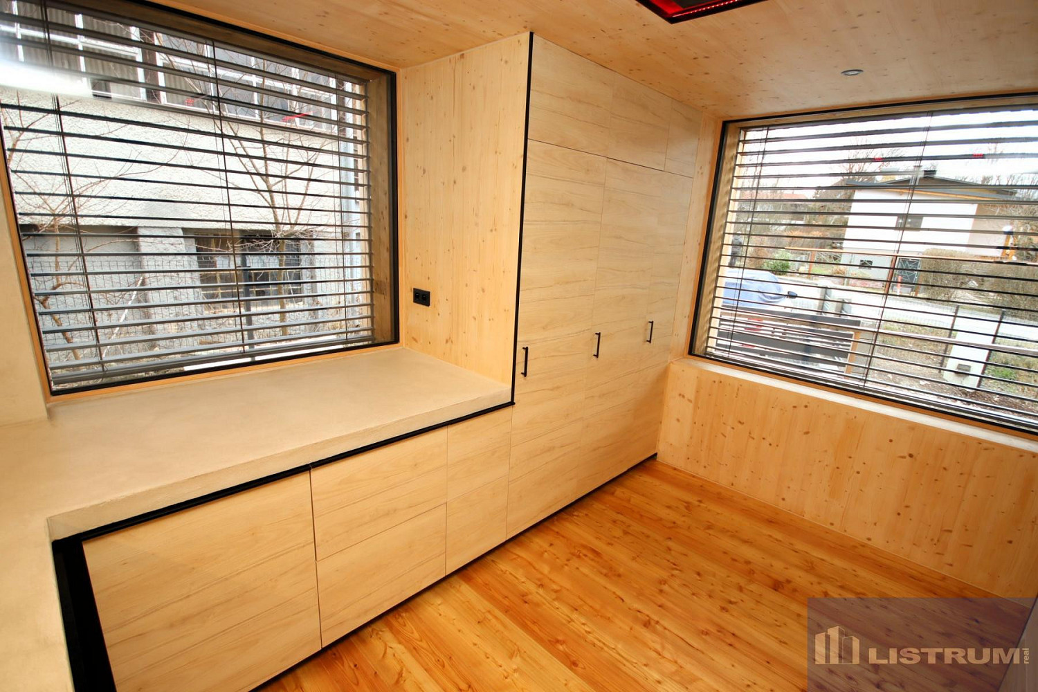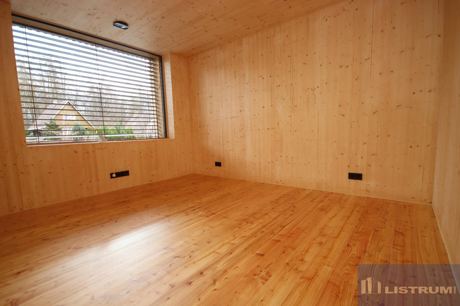 - Luxusní přírodní materiály masivní modřínové podlahy, smrkové biodesky, cementová stěrka,