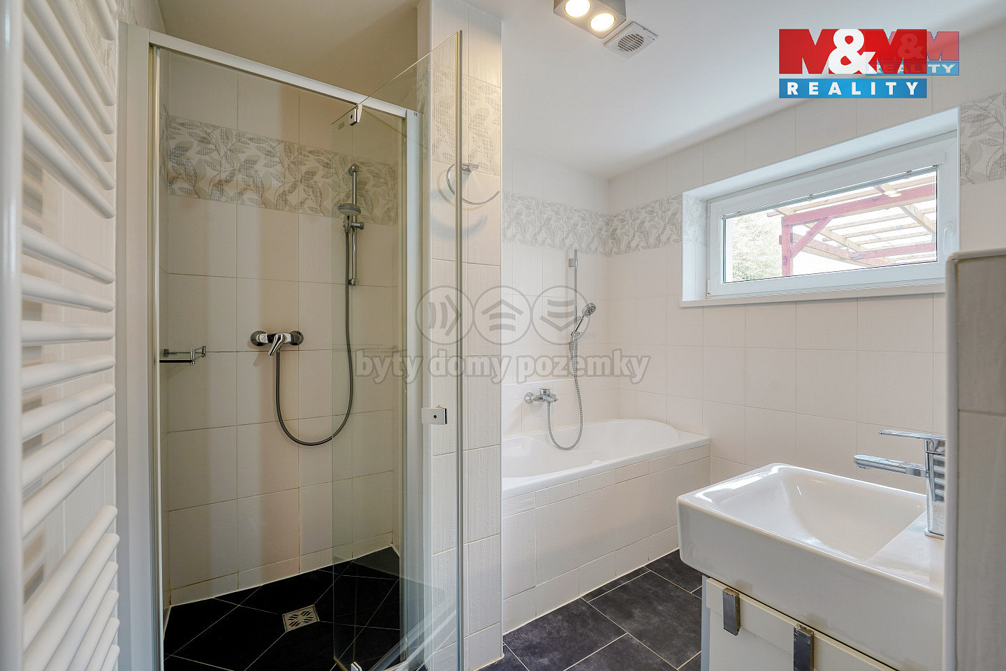 Interiér domu je řešen s důrazem na pohodlí a funkčnost. K dispozici jsou dvě toalety, prostorná terasa (26 m²) ideální pro rodinné posezení a také balkon o rozloze 8 m², odkud se otevírá pěkný výhled do okolní krajiny. Dům je napojen na veřejný vodovod a kanalizaci. Vytápění zajišťuje plynový kotel nebo krbová kamna, ohřev vody pak bojler – provoz domu je tedy úsporný a spolehlivý.