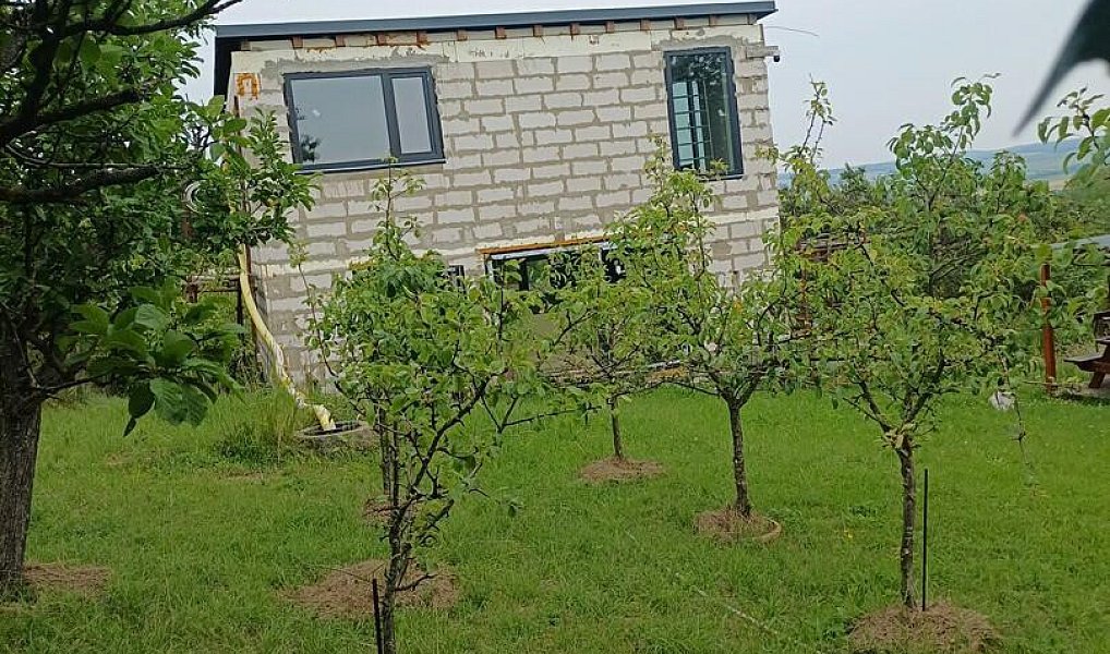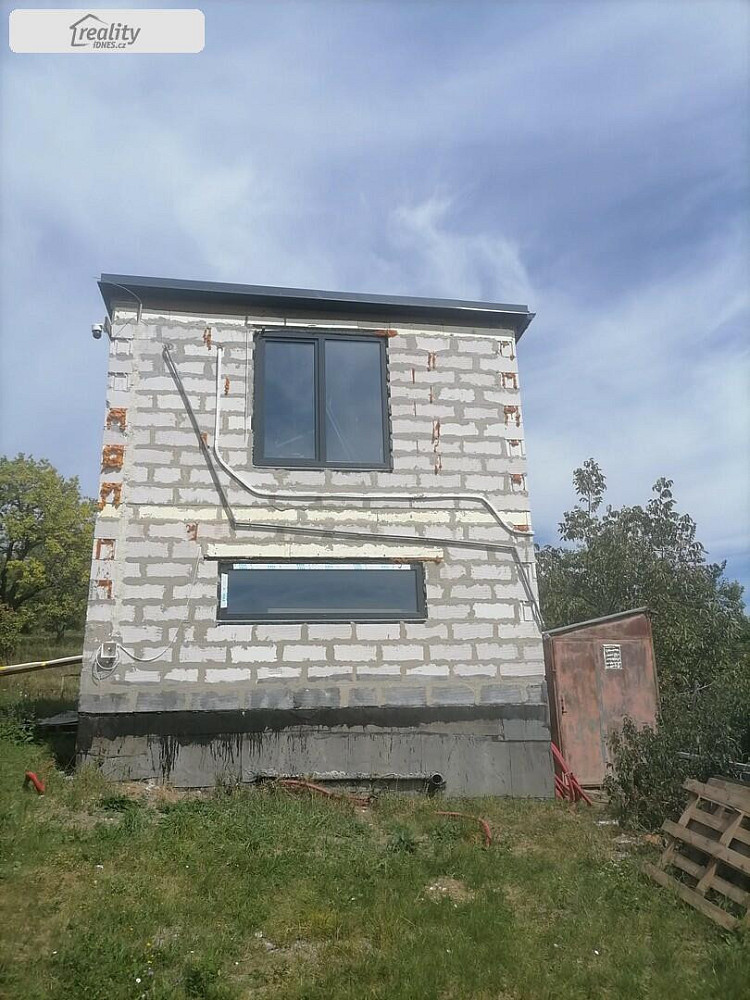 Nabízíme k prodeji zděnou chatu ve výstavbě ve Slavkově u Brna, umístěnou v chatové oblasti na severu Slavkova v blízkosti sochy sv. Jana Nepomuckého a Křížové cesty, přístupné ze serpentin po nezpevněné kamenité cestě až k hranicím pozemku. Chata byla postavena na pozemku v mírném svahu o výměře 756 m² na základě platného stavebního povolení, ale nebyla dokončena. Chata má výměru zastavěné plochy 47 m², půdorysný rozměr 5,78 x 8,19 m, je nepodsklepená, dvoupodlažní, napojená na elektřinu 3 fáze, odvodnění a splaškové vody prostřednictvím chemického wc, dešťové vody svedeny do akumulační nádrže na pozemku. Na pozemku se nachází spodní voda, možnost vyvrtání studny. Stavba je ve stavu dokončené hrubé stavby, s plastovými okny s trojsklem a rovnou střechou, místo schodů je výsuvný žebřík. Kompletní PD je k dispozici. Dispozice stavby: v 1. NP se nachází vstupní předsíň, koupelna s wc a obývací pokoj s kuchyní, ve 2. NP se nachází 2 pokoje a samostatné wc. V současné době je na pozemku umístěno venkovní wc, zahradní domek na nářadí a karavan, který je součástí kupní ceny. Karavan je umístěn u hranice pozemku, který je celý oplocen s příjezdovou branou. Karavan je kompletně vybavený včetně lednice, el. varné desky, čerpadla na vodu z akumulační nádrže, 3 lůžek a rozkládací sedačky. Chata se prodává ve stavu rozestavěnosti, kdy je nutné dokončit výstavbu dle pravomocného stavebního povolení, které bylo prodlouženo. Chata dosud není zapsaná v katastru nemovitostí. Po dobu dokončení výstavby bude karavan sloužit k zajištění zázemí, je zde zavedena elektřina, voda z akumulační nádrže. Chata se nachází nad Slavkovem v rekreační oblasti a neslouží k trvalému bydlení. Na zahradě se nachází ovocné stromy, švestky, třešně, hrušně, višeň, rodící olivovník, gdoule, živý plot je vysázen z bobkovišně obecné. Chata se nachází v zeleni, je odtud krásný výhled na okolí. Nabídková cena chaty umístěné na pozemku včetně karavanu a PD je 2,500.000,- Kč. Cena je k jednání.