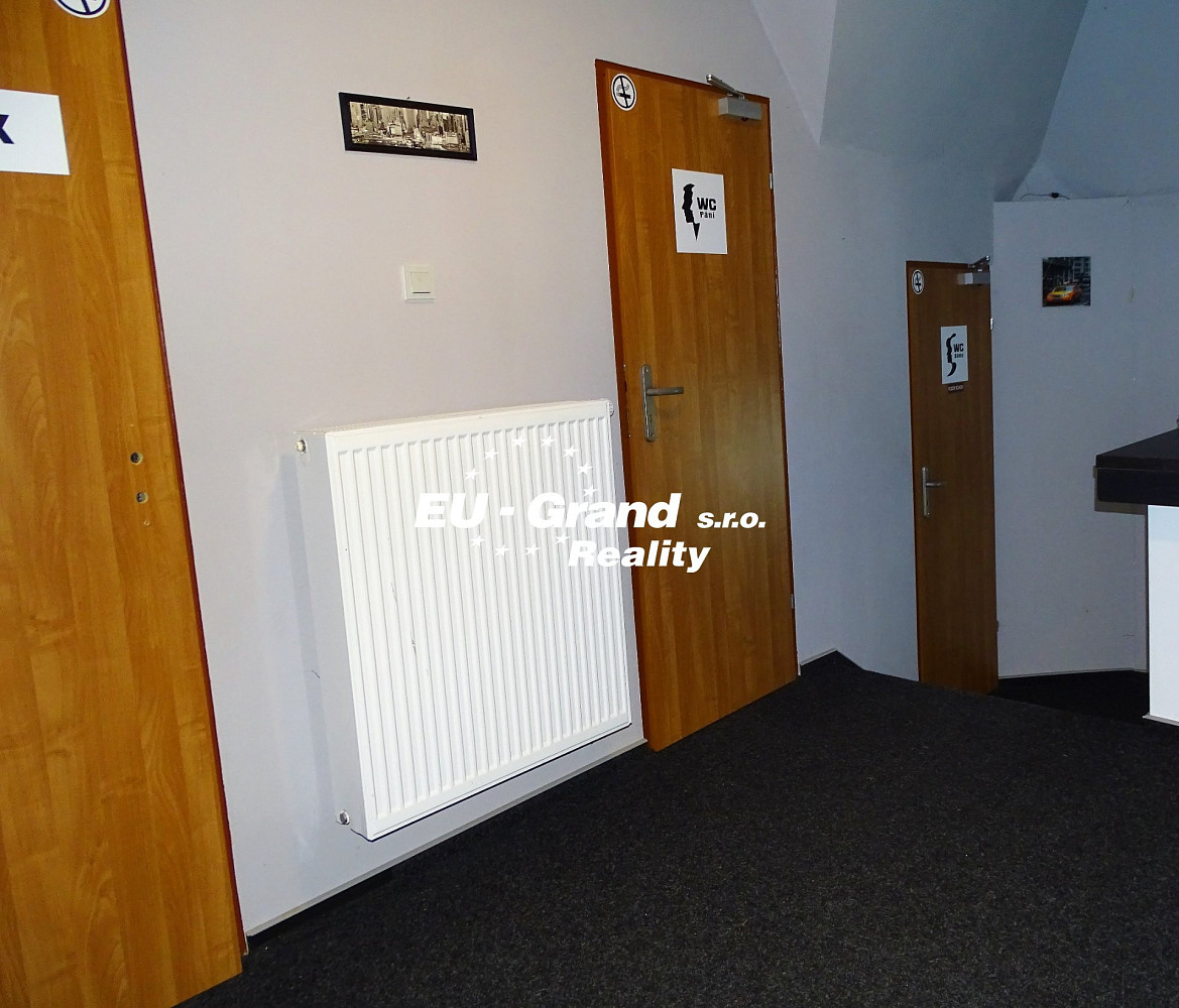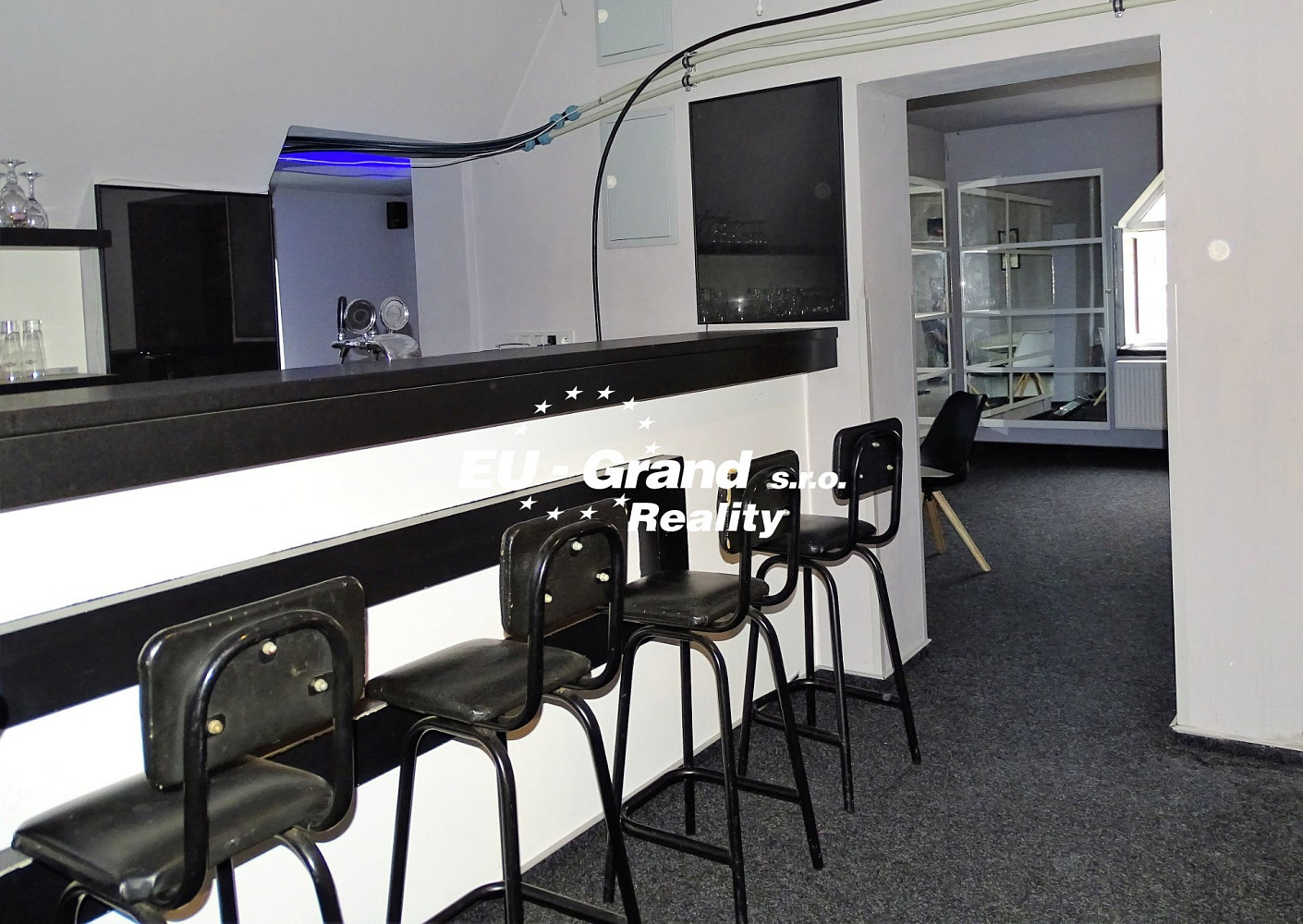 Hlavní prostor přízemí: bar se stoly, 1 x místnost s kulečníkovým stolem, 1 x samostatný salonek, 1 x místnost zrcadlová /sloužila jako herna/. V zadní části přízemí jsou toalety a skladové zázemí. Kuchyň zde není.