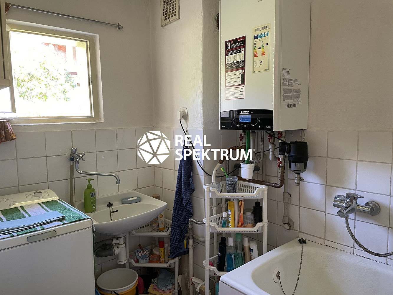 plynovým kotlem, který slouží současně pro ohřev teplé vody.