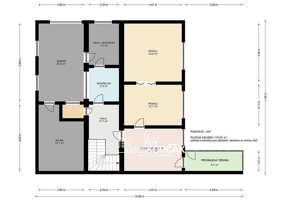 Tento prostorný dům s garáží se nachází na pozemku s výměrou 179 m² a k tomu má ještě 90 m² zahrádky.