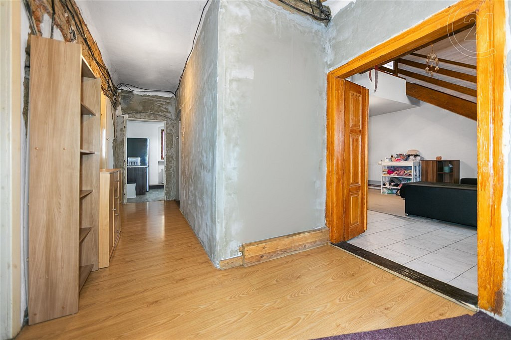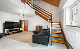 V přízemí domu se nachází prostorný obývací pokoj se vstupem do koupelny a do horního patra. Kuchyně je doplněna praktickou spíží, která nabízí dostatek místa pro uskladnění potravin. Dále jsou zde dvě další místnosti, které sice neprošly kompletní rekonstrukcí, ale jsou plně využitelné.