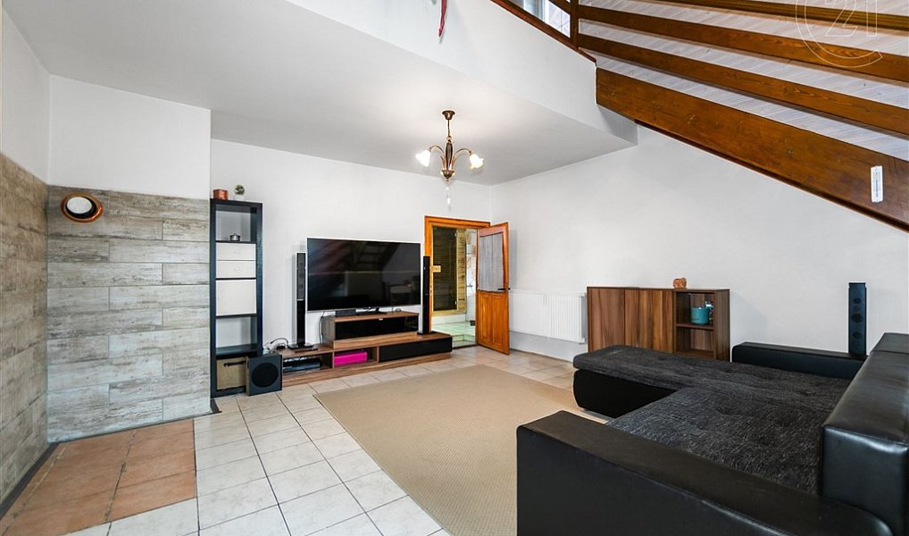 Dům je napojen na obecní vodovod a kanalizaci, vytápění zajišťuje kotel na tuhá paliva. K nemovitosti náleží také garáž, která aktuálně slouží jako sklad, a menší, avšak plně využitelná zahrada – vhodná pro relaxaci či parkování. Další parkovací místa jsou k dispozici přímo před domem.