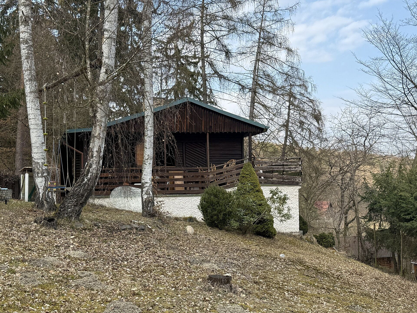 K prodeji nabízím dřevěnou krásnou chatu s číslem evidenčním, vlastní studnou a nádherným výhledem na údolí Vltavy, postavené na mírně svažitém vlastním pozemku o celkové výměře 740 m², nacházející se na kraji obce Třebenice u obce Slapy. Chata se nachází na kraji lesa.