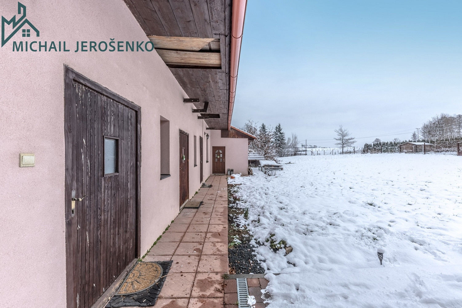 Dům nabízí pohodlné bydlení v dispozici 3+1: tři samostatné pokoje a kuchyň poskytují dostatek soukromí i společného prostoru pro rodinu. Celková podlahová plocha činí 80 m², přičemž dispozice umožňuje praktické rozšíření o další místnost přibližně 20 m² – ideální pro dětský pokoj, pracovnu, hostinský pokoj nebo ateliér. Celkový dojem umocňuje dobrý, dlouhodobě udržovaný stav domu, díky kterému se můžete pohodlně nastěhovat bez nutnosti okamžitých větších investic.