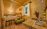 Díky zateplení je chata celoročně obyvatelná o dispozici 3+kk, se zasklenou zimní zahradou, balkonem s úžasným výhledem, saunou a krytým venkovním posezením chytne za srdce každého, kdo má rád přírodu a klid.