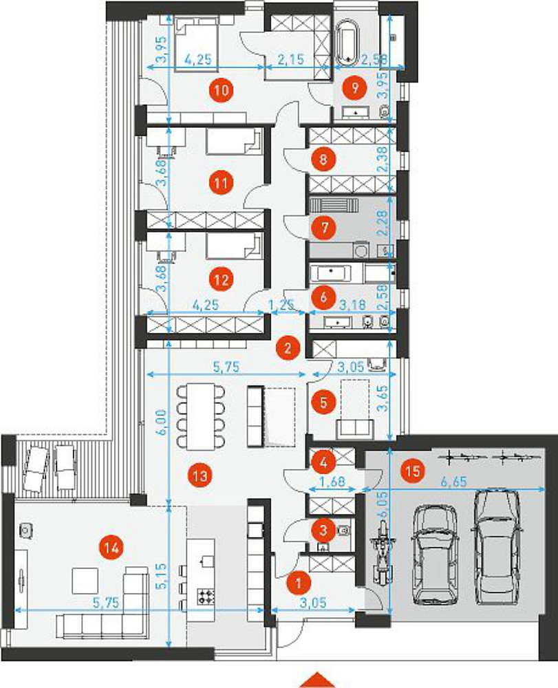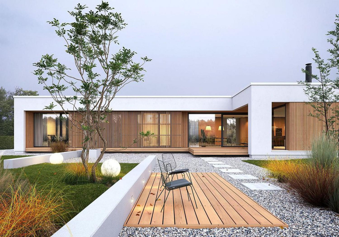 Architektonický návrh domu Como se vyznačuje tvarem písmene L, které umožňuje snadné rozdělení do jednotlivých zón. Disponuje garáží pro dvě auta. Za pozornost stojí prostorný denní prostor. Otevřená kuchyně je skvělým řešením pro rodiny s malými dětmi, kdy rodiče mohou dohlížet na jejich hraní v obývacím pokoji i při přípravě jídla. Architekt naplánoval místo v kuchyni pro praktický ostrov, což je moderní a velmi pohodlné řešení. V kuchyni je jídelní stůl, který je skvělým místem pro rodinné oslavy a společná jídla. Architekt také poskytl místo pro jídelnu, díky níž bude sdílené jídlo vynikající příležitostí stolovat v rodinné atmosféře. Dům má pohodlnou koupelnu a samostatnou toaletu, což je užitečné zejména při návštěvě hostů. Noční část se skládá ze čtyř ložnic, které jsou ideální pro větší rodinu. Místnosti lze také použít jako pokoj pro hosty nebo kancelář či pracovnu. Velkou výhodou projektu je praktická šatna, která minimalizuje potřebu mít v místnostech velké skříně, takže jsou prostornější. Dům má vyhrazen prostor pro praktickou ekonomickou zónu. Působivá terasa umožňuje kontakt s přírodou, aniž byste byli příliš daleko od svého domova. Jeho tvar ukazuje řešení odkazující na moderní styl s důrazem na detail, který je ideálním řešením pro klienty, kteří oceňují nejnovější řešení.