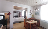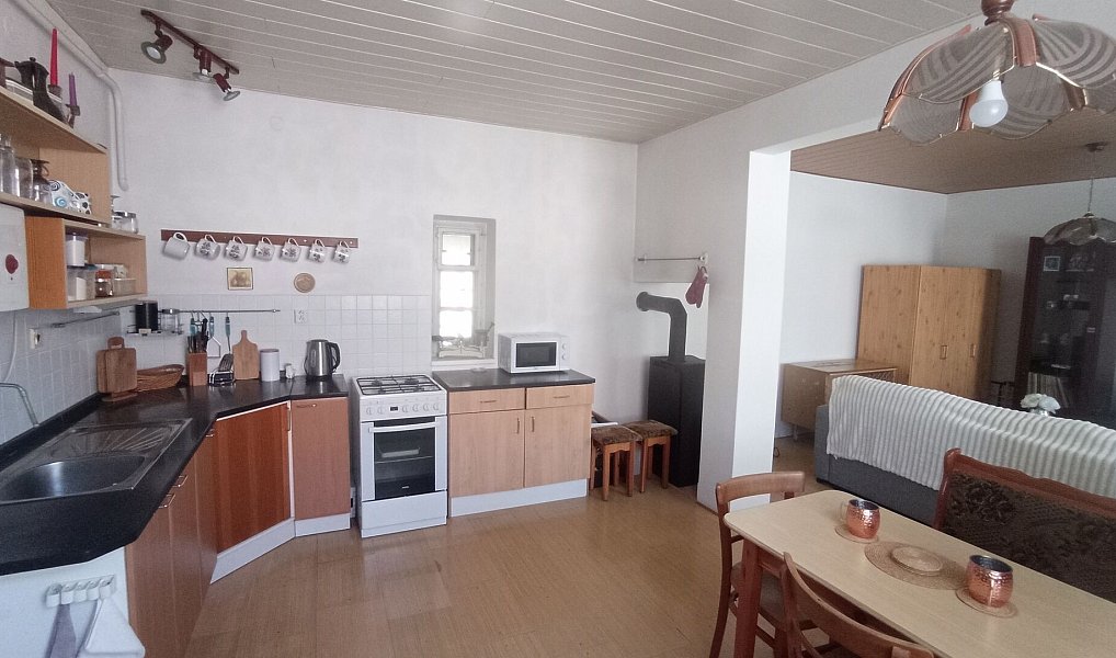 Dům disponuje prostornou kuchyní s jídelnou, která je spojená s prostorným obývacím pokojem, ložnicí a koupelnou se sprchovým koutem.
