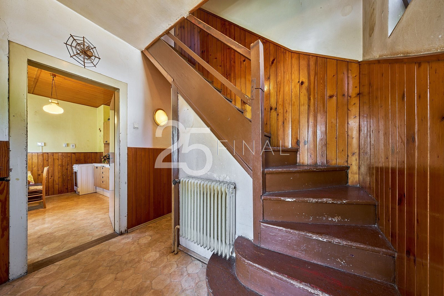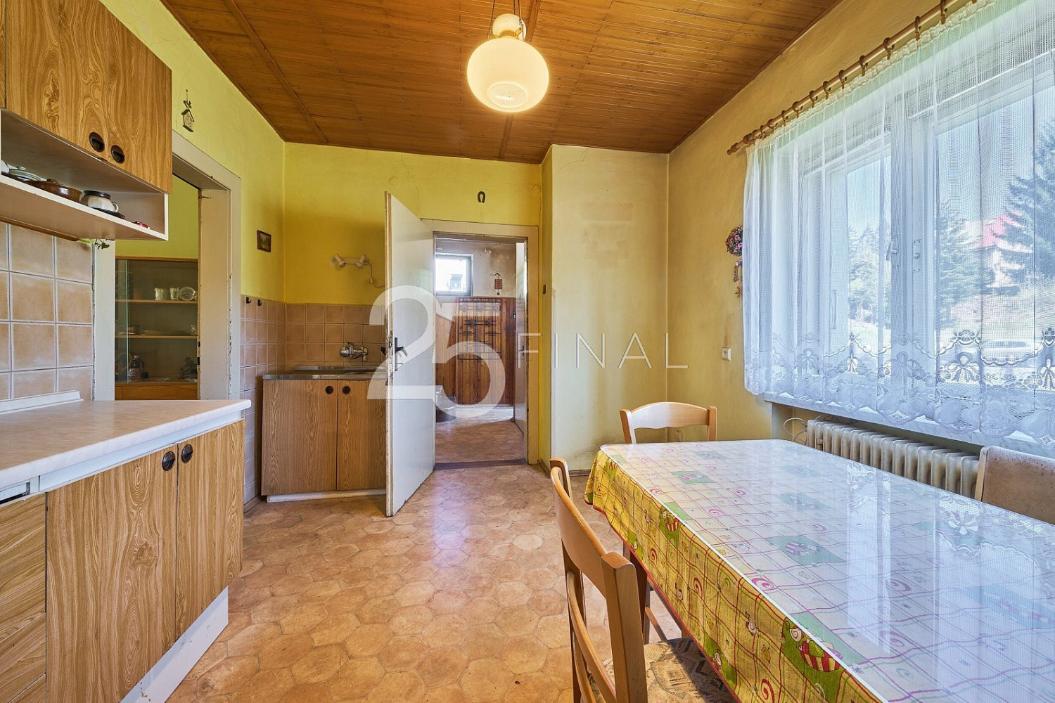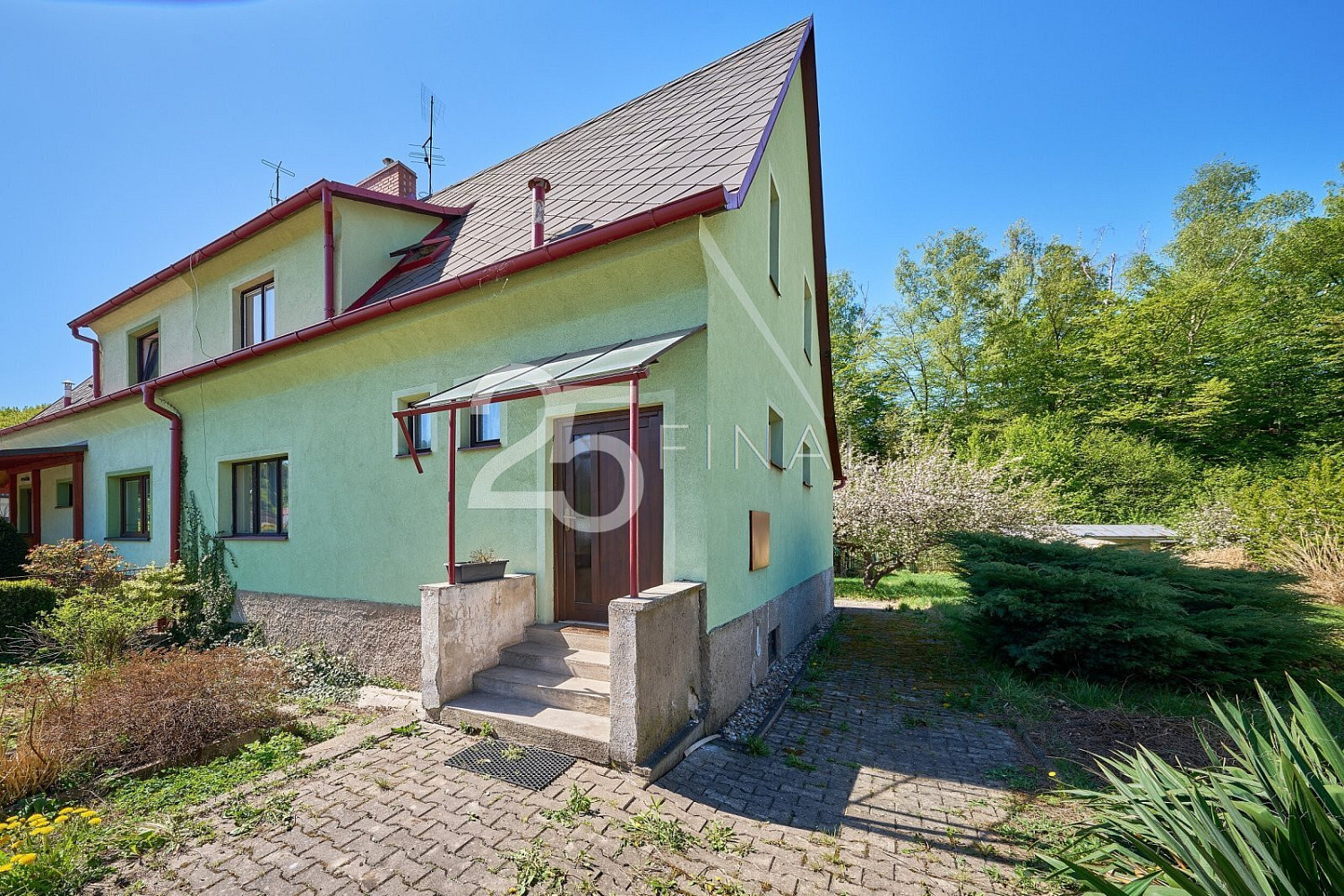 Dovoluji si vám nabídnout k prodeji rodinný dům se zahradou a garáží, jehož dispozice 4+1 má celkovou podlahovou plochu 115 m² a užitnou 90 m². Nachází se v okrajové části obce Úpice, Královéhradeckém kraji, podhůří Krkonoš. Město je vzdálené 14 km JV od okresního města Trutnov a 20 km SZ od sousedního okresního města Náchod. Využijte jedinečné příležitosti získat dotaci až několik set tisíc korun na rekonstrukci tohoto domu. Díky programům „Oprav dům po babičce“ nebo „Nová zelená úsporám“ můžete výrazně ušetřit na nákladech a zároveň navýšit hodnotu nemovitosti až o desítky procent – a to už během prvních měsíců vlastnictví. S kompletním vyřízením dotace vám rádi pomůžeme. Jedná se o pravou část dvojdomku na zastavěné ploše a nádvoří o velikosti 111 m², se zahradou 507 m² a garáží na zastavěné ploše a nádvoří 39 m². Zděná nemovitost z roku 1941 je patrová, zčásti podsklepená, ve stavu určeném k rekonstrukci. Od výstavby domu proběhlo několik rekonstrukcí, zejména před dvaceti lety udělaná nová voda i odpady, střecha pokrytá bezazbestovým eternitem, následné oplechování, natřené nově okapy a žlaby, elektrika dána do mědi (nový el. rozvaděč). V přízemí domu se nachází: zádveří, chodba, samostatné WC, spíž, kuchyň s jídelním koutem, obývací místnost, ložnice a koupelna. Z hlavní chodby vedou schody do patra a dolů do sklepa. V patře domu naleznete chodbu, 2 pokoje a 2 půdní prostory k úložným potřebám (dalších 25 m²) . V prvním podzemním podlaží je sklep s kotli a druhý menší sklípek, do něhož se vchází zvenčí, ze zadní části domu. Podlahovou krytinu nemovitosti tvoří linoleum, koberce a keramická dlažba. Vytápění je zajištěno dvěma kotli – litinový plynový cca 15 let starý a litinový na tuhá paliva, přičemž teplo je rozvedeno do radiátorů ve všech místnostech domu, ohřev vody řešen elektrickým bojlerem umístěným v koupelně. Dům, jako takový, je napojen na veřejný vodovod, kanalizaci, plyn i elektřinu. Prostor venkovního zázemí k posezení naleznete na zadní části zahrady, kde je postavena venkovní zděná letní kuchyň. Kompletně oplocená zahrada má ovocné stromy, keře a díky své rovině výrazně usnadní všechny úpravy i další údržbu. Za domem navíc protéká klidný potok, který pozemek obohacuje o přírodní atmosféru a pocit soukromí. Vzhledem k současnému nenáročnému stavu zahrady má nový majitel plnou svobodu vytvořit si ji podle vlastních představ. Garáž je umístěna hned vedle zahrady, po pravé straně – od silnice lze zaparkovat dvěma automobily, a to jedním přímo v garáži a druhým hned před ní. Dům je vhodný zejména pro rodinné bydlení v okrajové části města s využitím krátké dostupnosti dětí do školy. Energetický štítek nedoložen, nemovitost zařazena do kategorie energetické náročnosti G. V r. 2021 byla otevřena dálnice z Prahy do Jaroměře, dojezd na nájezd je 25 minut (plánovaný sjezd Trutnov – 10 min). V případě zájmu vám zajistíme výhodné financování. Dům je volný ihned a čeká na své nové majitele. Jednání o ceně možné. Zvu Vás tímto na prohlídku.