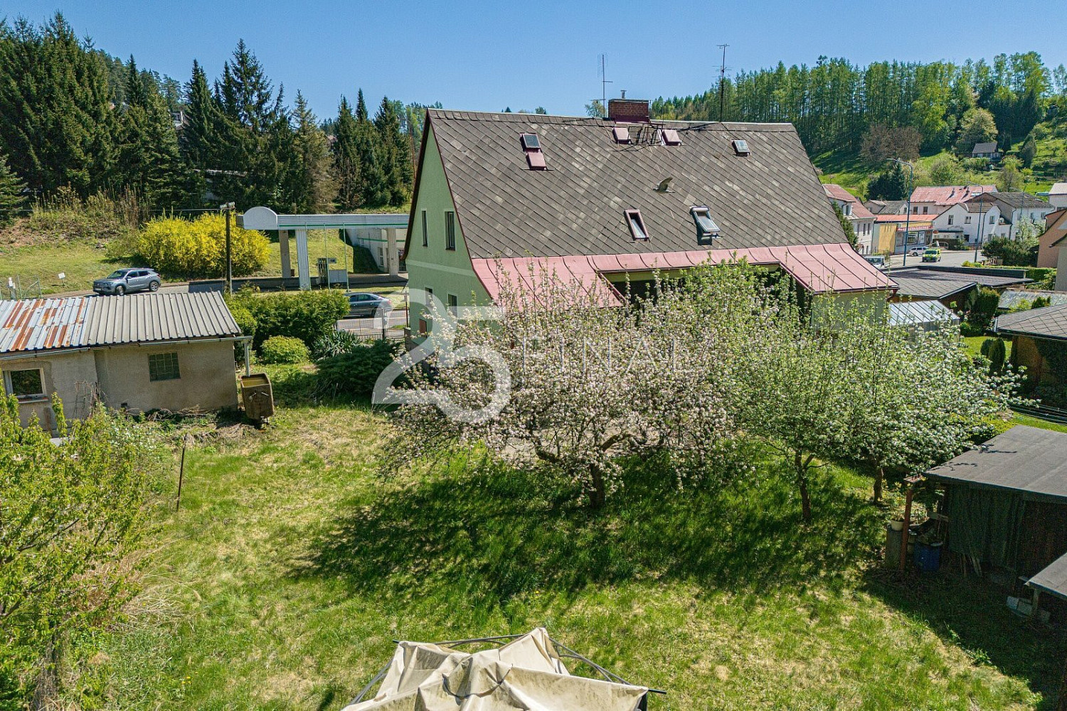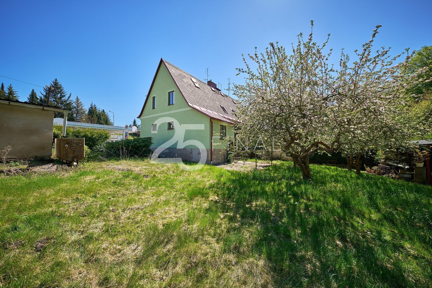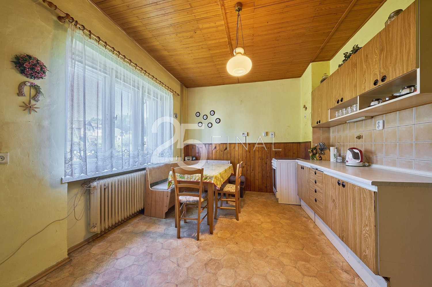Dovoluji si vám nabídnout k prodeji rodinný dům se zahradou a garáží, jehož dispozice 4+1 má celkovou podlahovou plochu 115 m² a užitnou 90 m². Nachází se v okrajové části obce Úpice, Královéhradeckém kraji, podhůří Krkonoš. Město je vzdálené 14 km JV od okresního města Trutnov a 20 km SZ od sousedního okresního města Náchod. Využijte jedinečné příležitosti získat dotaci až několik set tisíc korun na rekonstrukci tohoto domu. Díky programům „Oprav dům po babičce“ nebo „Nová zelená úsporám“ můžete výrazně ušetřit na nákladech a zároveň navýšit hodnotu nemovitosti až o desítky procent – a to už během prvních měsíců vlastnictví. S kompletním vyřízením dotace vám rádi pomůžeme. Jedná se o pravou část dvojdomku na zastavěné ploše a nádvoří o velikosti 111 m², se zahradou 507 m² a garáží na zastavěné ploše a nádvoří 39 m². Zděná nemovitost z roku 1941 je patrová, zčásti podsklepená, ve stavu určeném k rekonstrukci. Od výstavby domu proběhlo několik rekonstrukcí, zejména před dvaceti lety udělaná nová voda i odpady, střecha pokrytá bezazbestovým eternitem, následné oplechování, natřené nově okapy a žlaby, elektrika dána do mědi (nový el. rozvaděč). V přízemí domu se nachází: zádveří, chodba, samostatné WC, spíž, kuchyň s jídelním koutem, obývací místnost, ložnice a koupelna. Z hlavní chodby vedou schody do patra a dolů do sklepa. V patře domu naleznete chodbu, 2 pokoje a 2 půdní prostory k úložným potřebám (dalších 25 m²) . V prvním podzemním podlaží je sklep s kotli a druhý menší sklípek, do něhož se vchází zvenčí, ze zadní části domu. Podlahovou krytinu nemovitosti tvoří linoleum, koberce a keramická dlažba. Vytápění je zajištěno dvěma kotli – litinový plynový cca 15 let starý a litinový na tuhá paliva, přičemž teplo je rozvedeno do radiátorů ve všech místnostech domu, ohřev vody řešen elektrickým bojlerem umístěným v koupelně. Dům, jako takový, je napojen na veřejný vodovod, kanalizaci, plyn i elektřinu. Prostor venkovního zázemí k posezení naleznete na zadní části zahrady, kde je postavena venkovní zděná letní kuchyň. Kompletně oplocená zahrada má ovocné stromy, keře a díky své rovině výrazně usnadní všechny úpravy i další údržbu. Za domem navíc protéká klidný potok, který pozemek obohacuje o přírodní atmosféru a pocit soukromí. Vzhledem k současnému nenáročnému stavu zahrady má nový majitel plnou svobodu vytvořit si ji podle vlastních představ. Garáž je umístěna hned vedle zahrady, po pravé straně – od silnice lze zaparkovat dvěma automobily, a to jedním přímo v garáži a druhým hned před ní. Dům je vhodný zejména pro rodinné bydlení v okrajové části města s využitím krátké dostupnosti dětí do školy. Energetický štítek nedoložen, nemovitost zařazena do kategorie energetické náročnosti G. V r. 2021 byla otevřena dálnice z Prahy do Jaroměře, dojezd na nájezd je 25 minut (plánovaný sjezd Trutnov – 10 min). V případě zájmu vám zajistíme výhodné financování. Dům je volný ihned a čeká na své nové majitele. Jednání o ceně možné. Zvu Vás tímto na prohlídku.