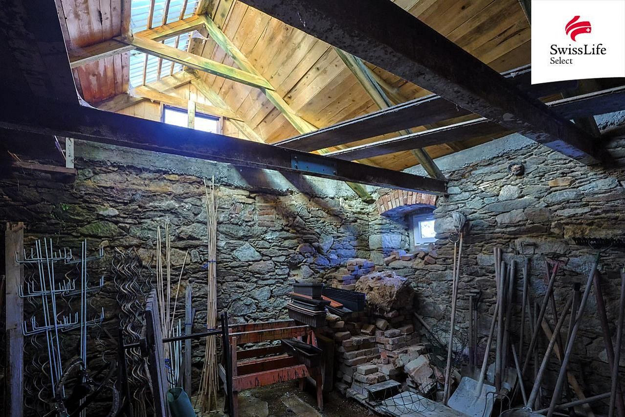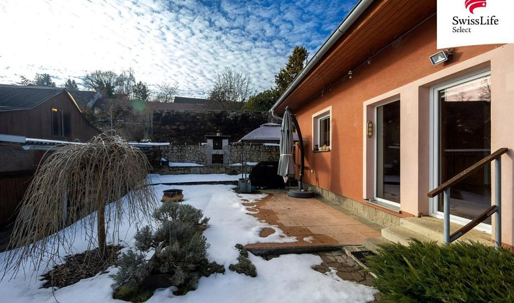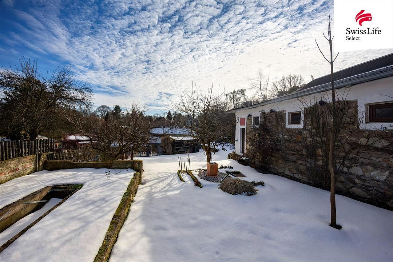 Vedlejší budova bývalého chlíva z precizně skládaného kamenného zdiva je jako stvořená například pro umělecký ateliér. Krom toho nabízí i velké zázemí pro dílnu, uskladnění zahradního náčiní, výpěstků, dřeva, popřípadě zde nějaký čtyřnohý spolubydlící najde svůj prostor. Zahrada je mírně svažitá, orientovaná na jih - slunce je tu dostatek. Pozemek je výborně udržovaný, najdete zde s láskou opečovávané květiny, keře i ovocné stromy. Vymazlená terasa a posezení s venkovním grilem s udírnou navazují na obývací pokoj s kuchyní.