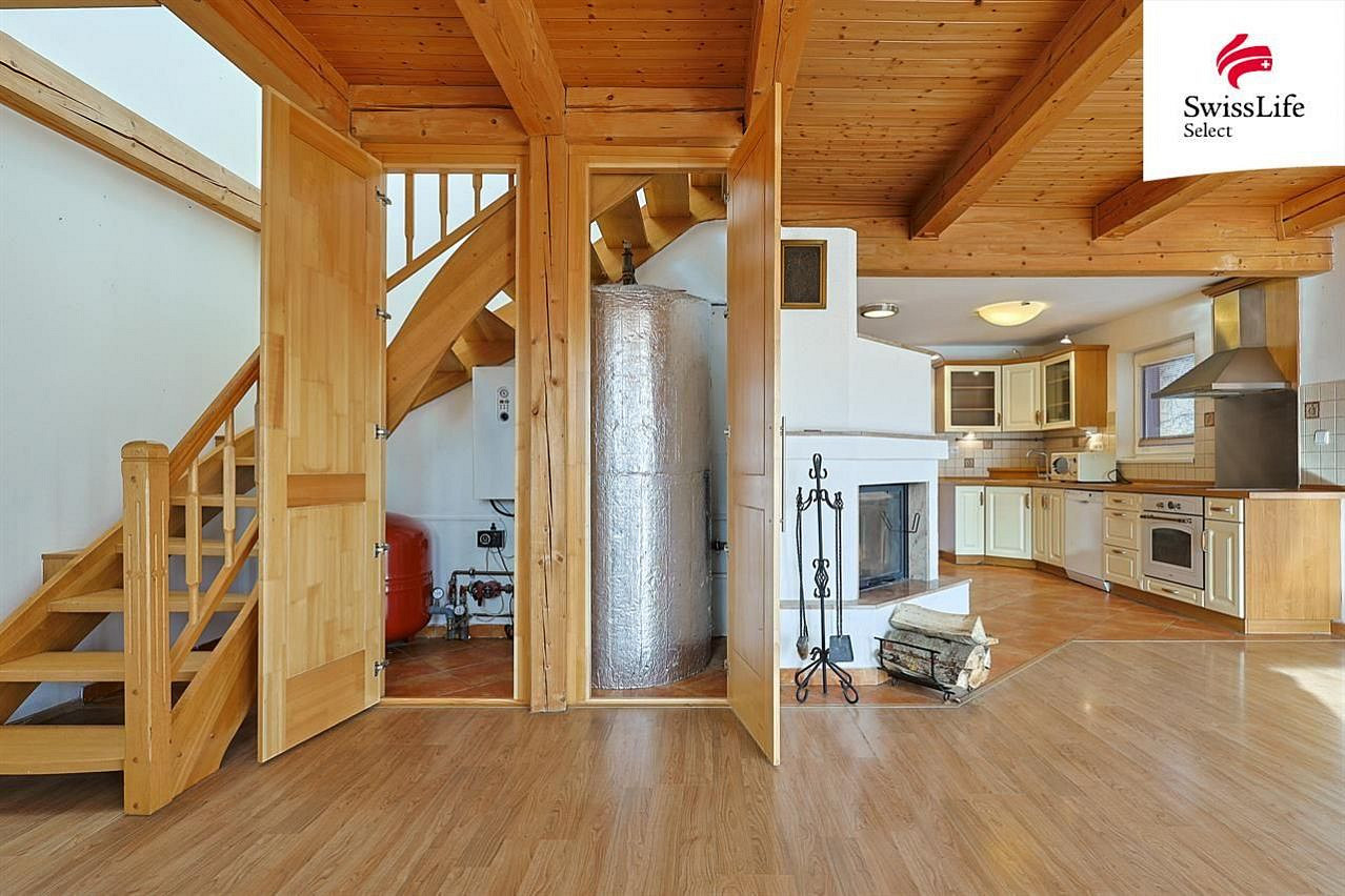 Voda v domě je obecní, odpad je sveden do septiku, vývoz je možný do obecní čističky za symbolickou cenu. Topení dřevem z krbu výměníkem do akumulační nádrže doplňuje elektrický kotel - pro případ, že se Vám třeba nebude chtít topit:), ohřev vody je bojlerem. Vzhledem k velikosti akumulační nádrže a dobré izolaci domu stačí topit i obden. Palivové dřevo si můžete objednat na místní pile nebo od obce Úterý, oboje za příjemné ceny a už naštípané.