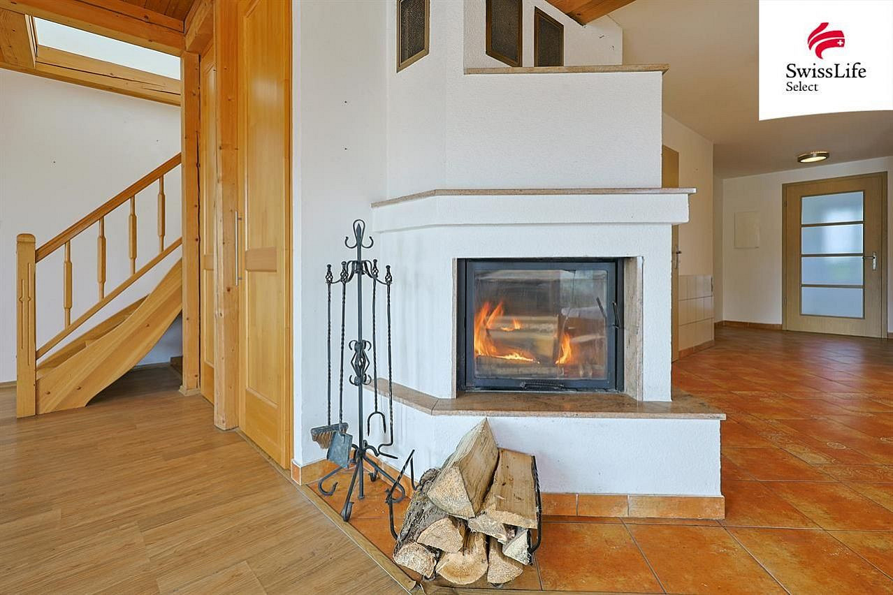 Moderní krbová vložka v obývacím pokoji navozuje atmosféru klidu... Jakoby se zde na chvíli zastavil čas.