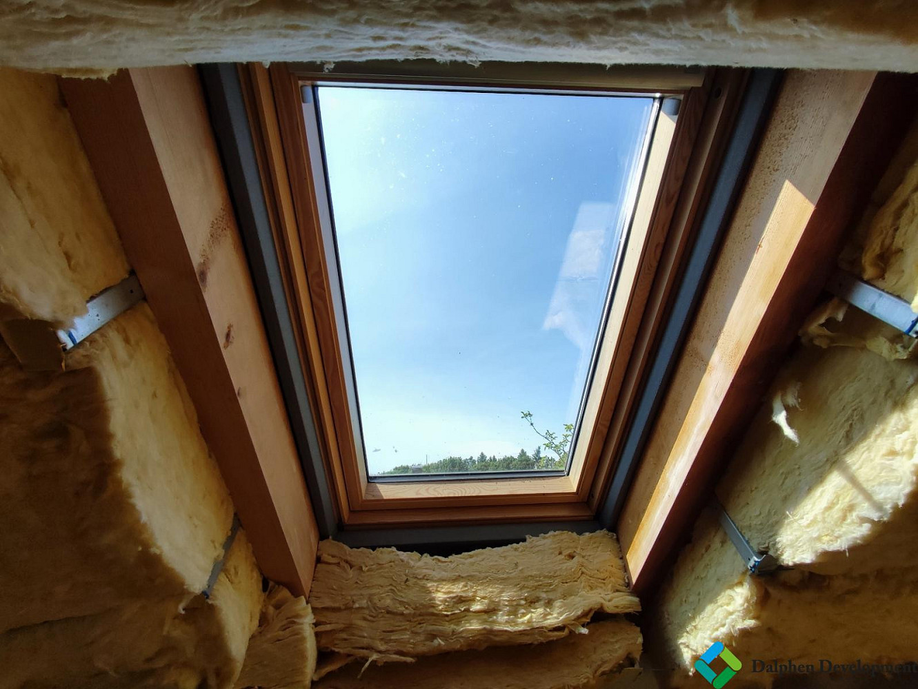 - nová střecha (konstrukce i pokrytí plechem Satjam), samozřejmostí je věnec, nová střešní okna Velux s 3skly