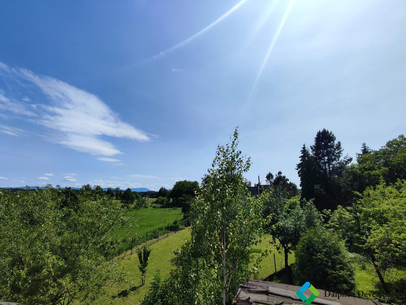 Příjezd je po obecní komunikaci, rovněž tak z vedlejší cesty u lesa. Nespornou výhodou je opravdu výměrově velká zahrada o výměře 2.697 m² a navazující les za domem, který zajišťuje dostatek soukromí. Zahrada je neudržovaná, se vrostlými převážně ovocnými stromy, u cesty vzrostlé túje.