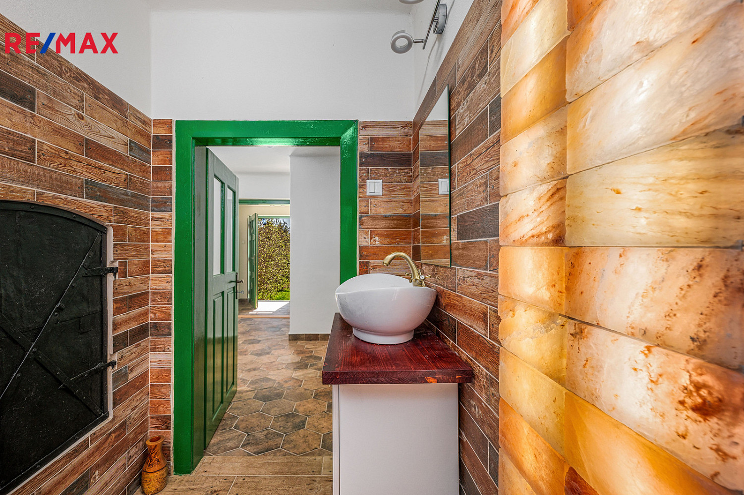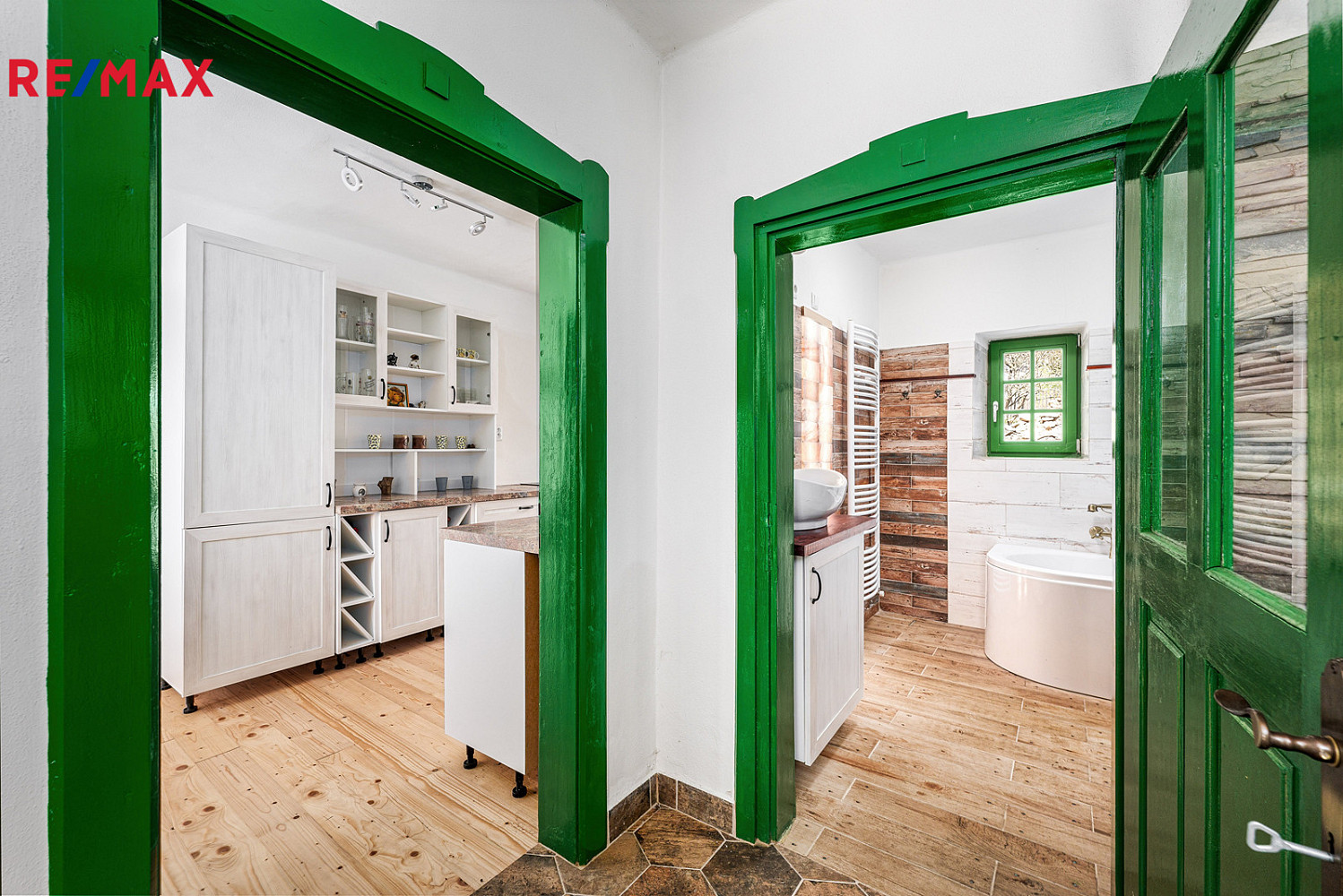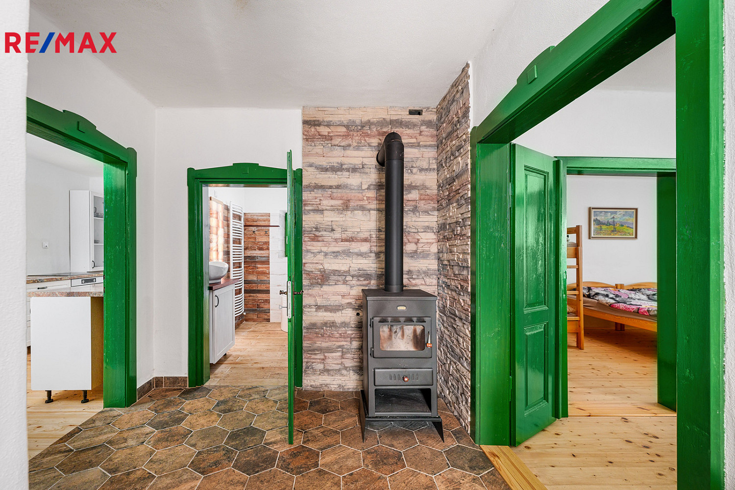 Interiér domu je vybaven novými dřevěnými podlahami a dlažbou, které dodávají prostoru teplý a útulný charakter. Nábytek z masivu podtrhuje rustikální atmosféru a zajišťuje dlouhou životnost. Nová izolační okna a dveře z masivu nejen zvyšují energetickou účinnost domu, ale také přispívají k jeho estetickému vzhledu. Vytápění je řešeno kamny s výměníkem a novými radiátory, což zajišťuje příjemné teplo i v chladnějších měsících. V domě se nachází i elektrokotel, díky kterému se v nemovitosti dá udržovat teplo i když nebudete doma. Koupelna v rustikálním stylu je mimo klasických světel vybavena i světly zapuštěnými za solné cihly, které vytvářejí jedinečnou a relaxační atmosféru.