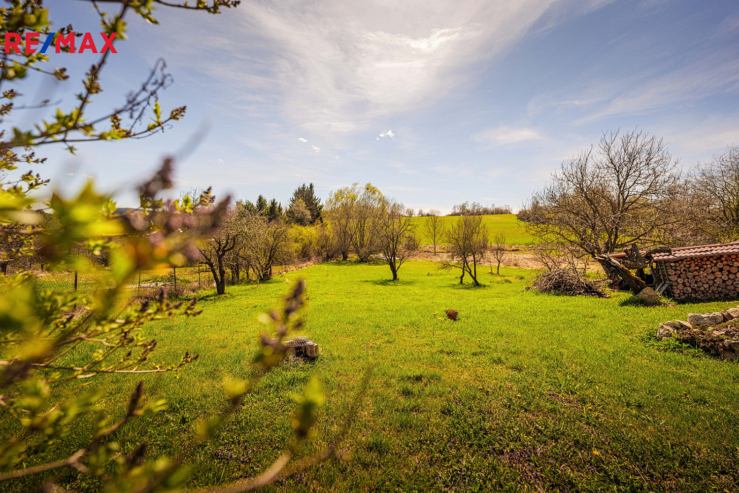 Součástí nemovitosti je rozlehlá zahrada o výměře 3 277 m², která poskytuje dostatek prostoru pro relaxaci, zahradničení či rodinné aktivity. Vzrostlé stromy (ořešák, třešeň) na zahradě navíc poskytují příjemný a v letních měsících i velice vítaný stín. Součástí je zahradní domek, s již zavedenou elektrikou a komínem připraveným na zapojení kamen, což poskytuje velké množství možného využití. Na zahradní domek navazuje terasa s krásným výhledem a posezením zakončená skalkou s květinami.